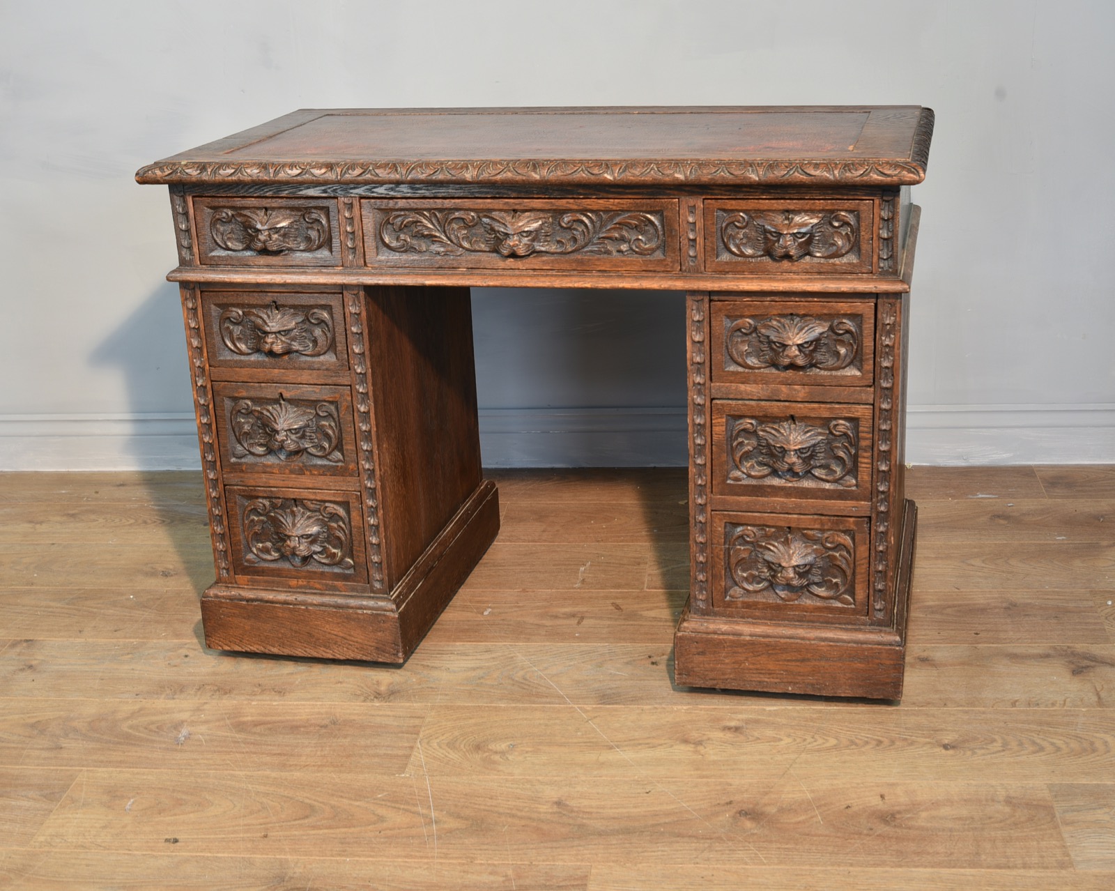 Antique Carved Oak Greenman Pedestal Desk (1 of 1)
