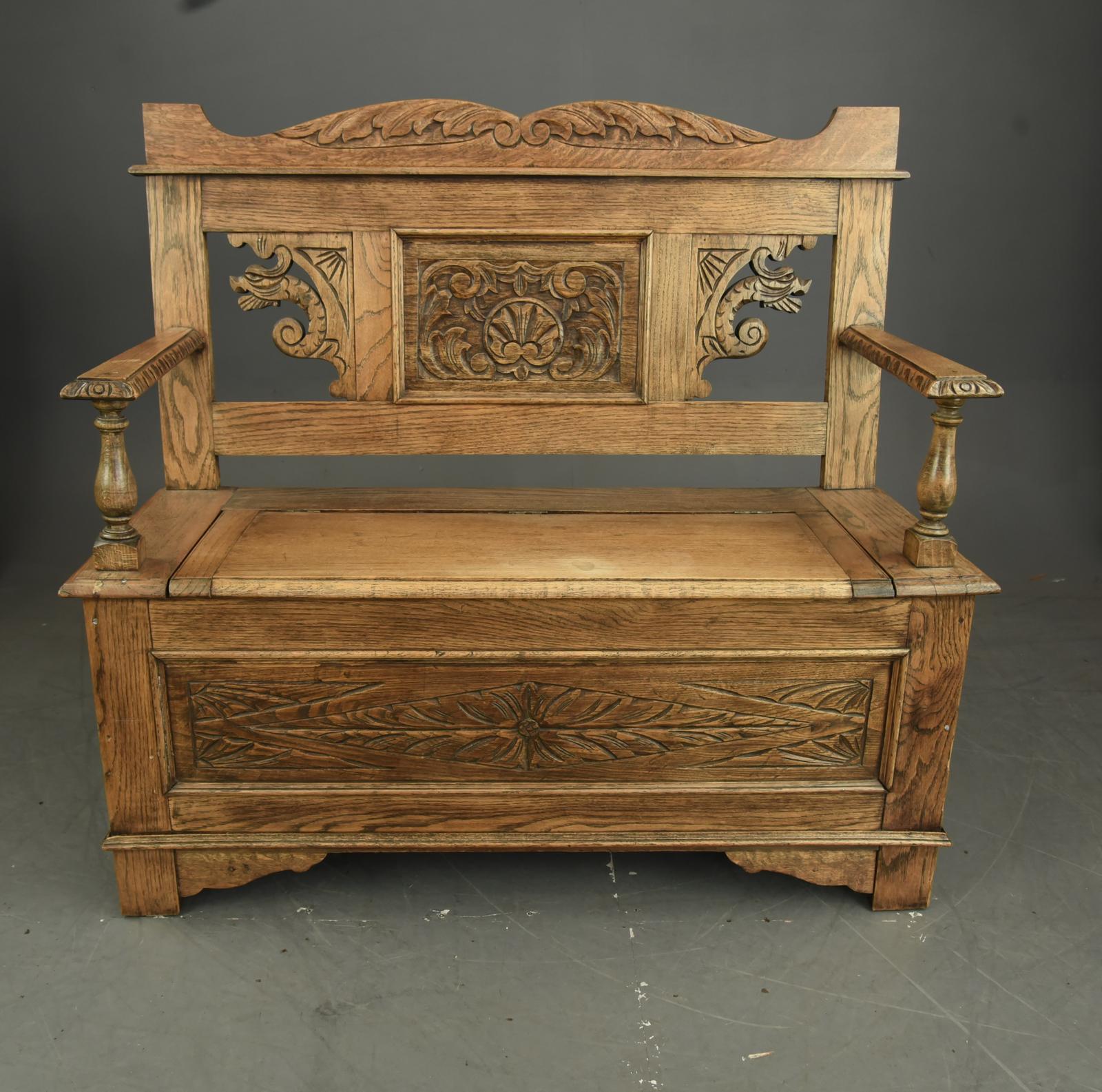 Antique Carved Oak Hall Bench Box Settle (1 of 9)