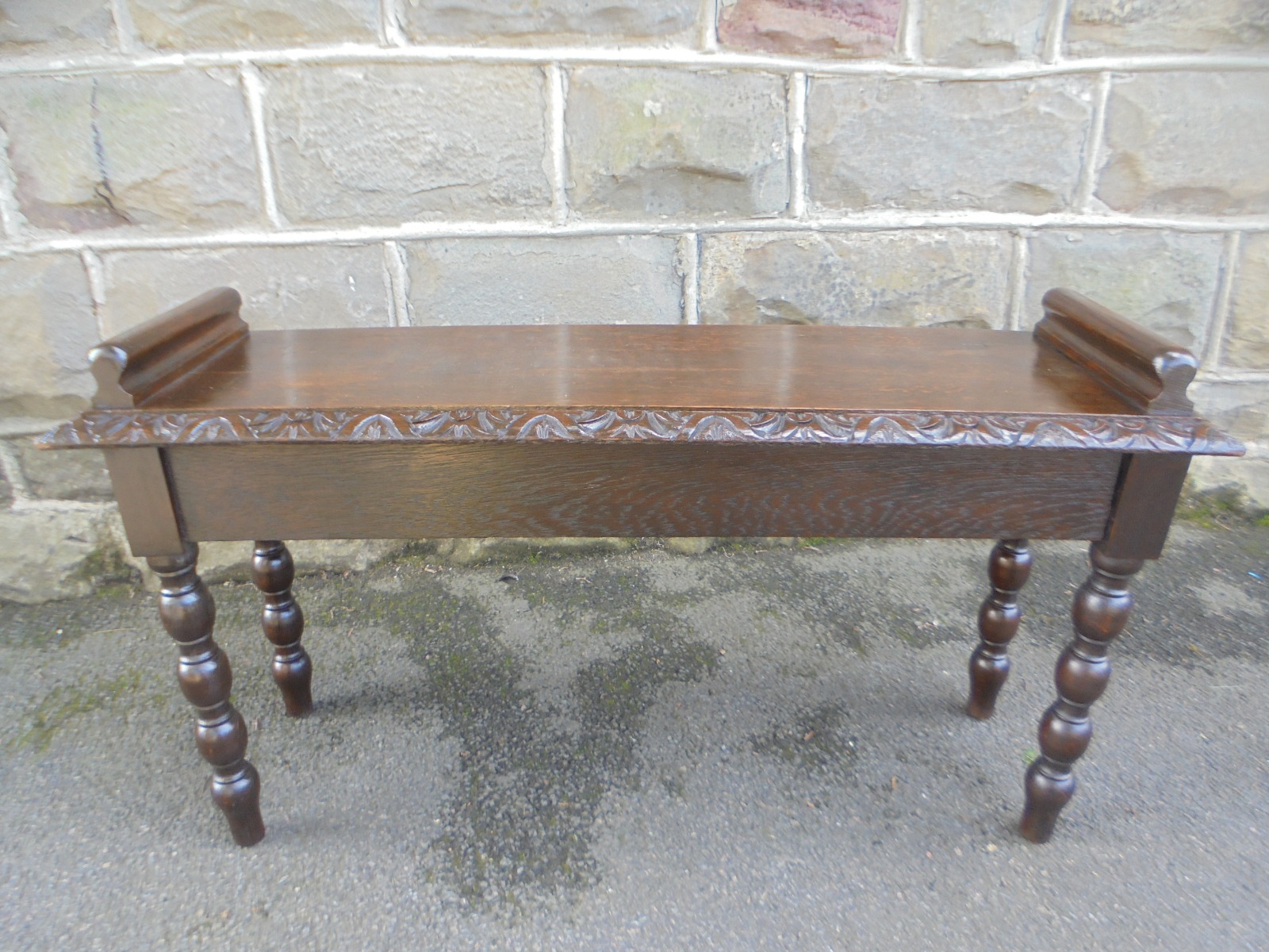Antique Carved Oak Hall Seat Stool Bench c.1860