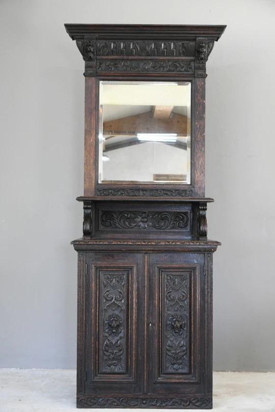 Antique Carved Oak Mirror Back Dresser