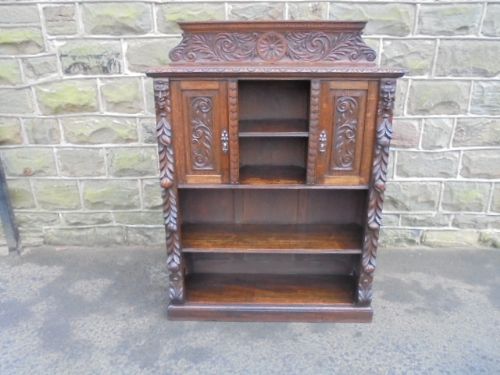 Antique Carved Oak Open Bookcase / Bookshelves c.1880