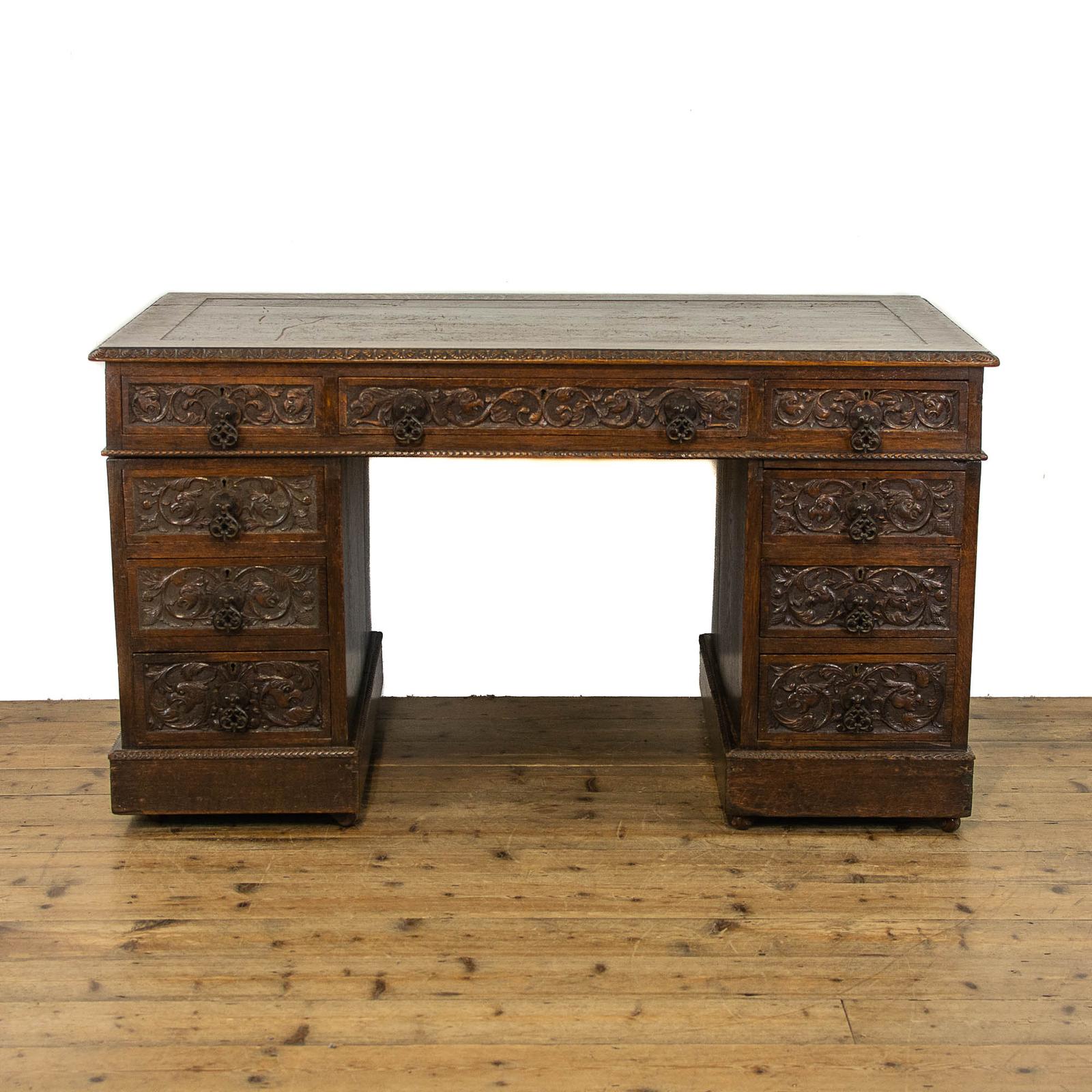 Antique Carved Oak Pedestal Writing Desk (1 of 13)