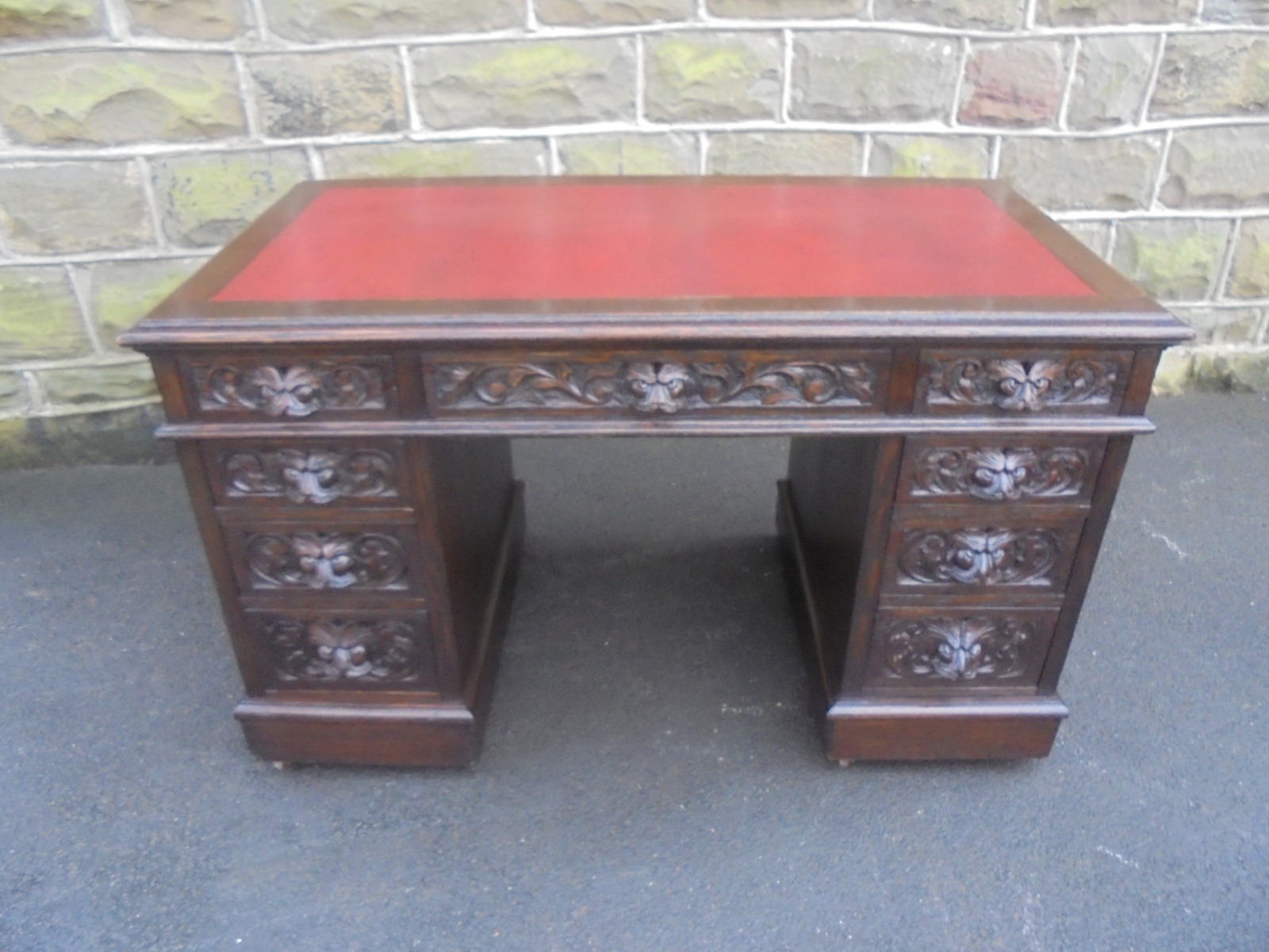 Antique Carved Oak Pedestal Writing Desk c.1860