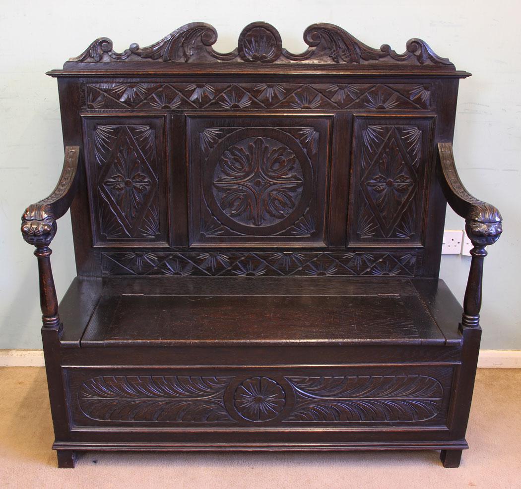 Antique Carved Oak Settle Bench Hall Seat (1 of 10)