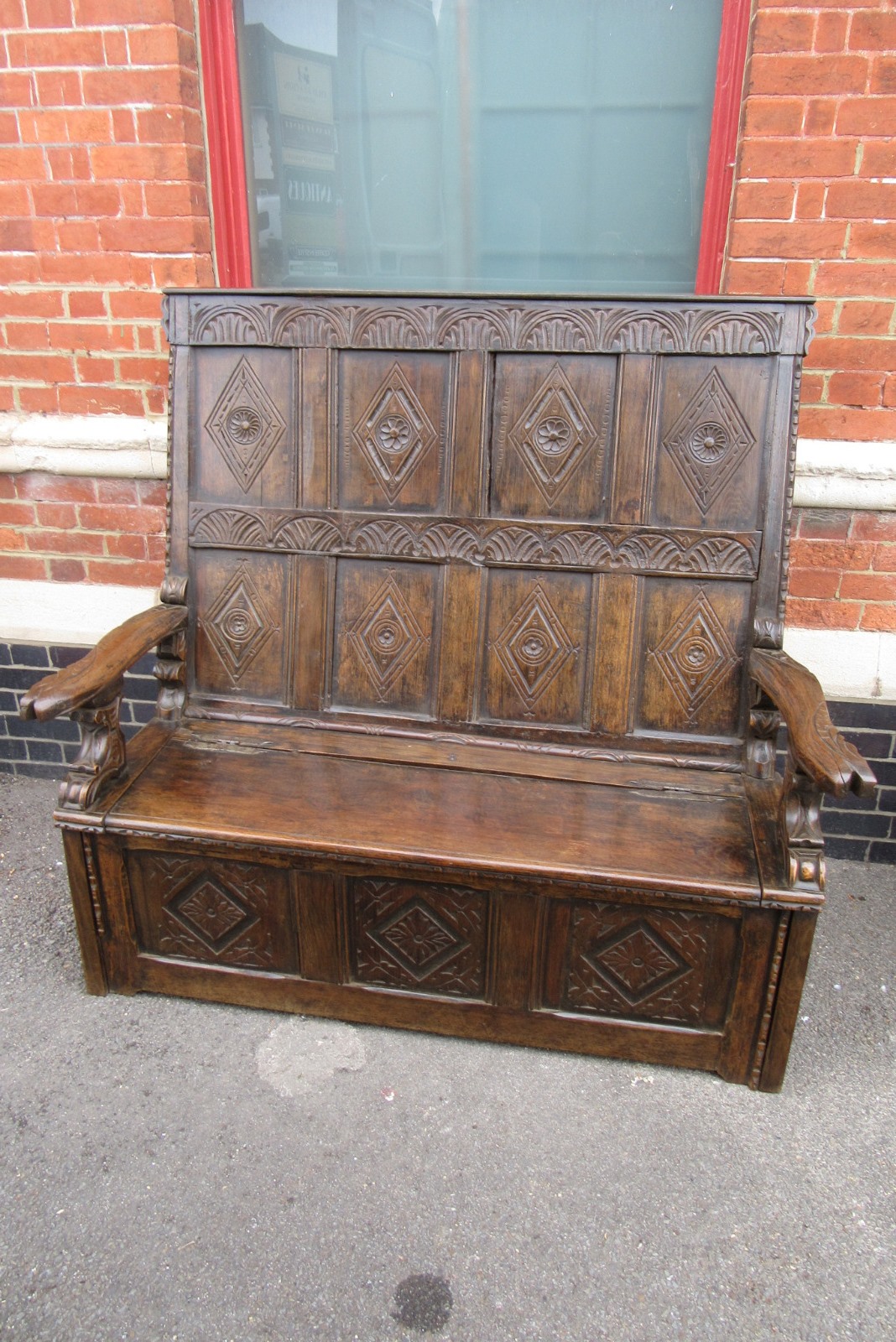 Antique Carved Oak Settle C.1850