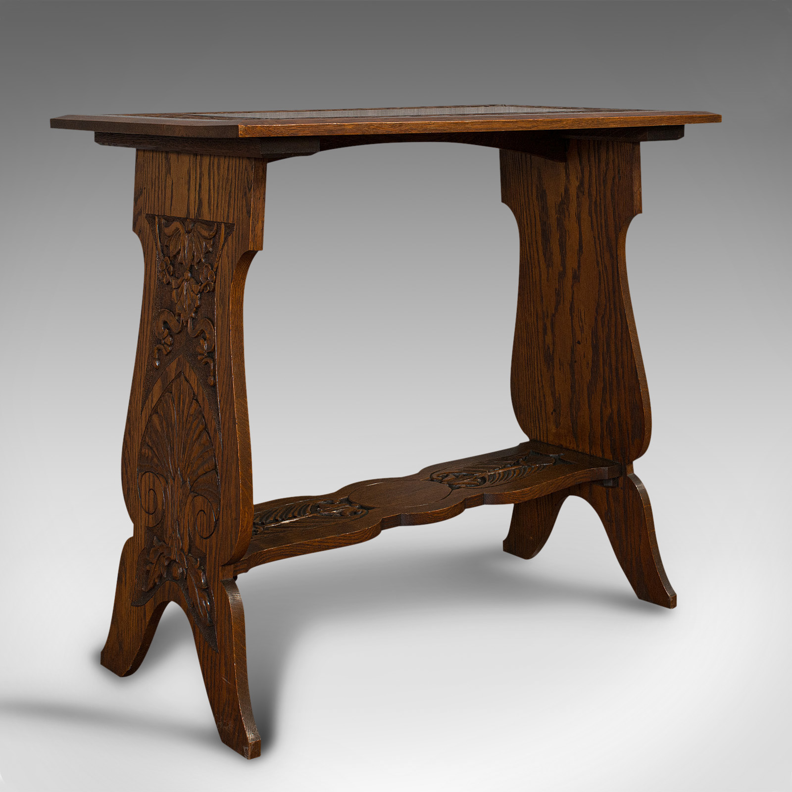 Antique Carved Side Table, Italian, Oak, Occasional, Lamp c.1910