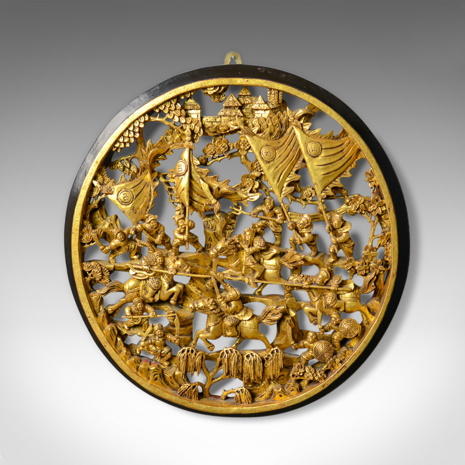 Antique Carved Wall Panel, Circular, Chinese, Giltwood, Decorative c.1900 (1 of 1)