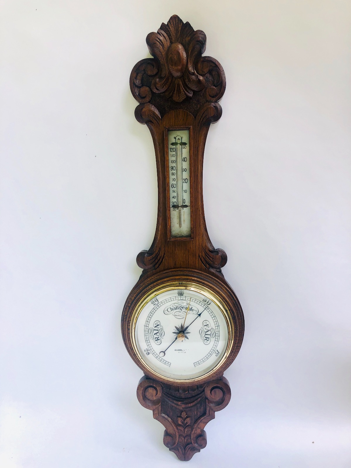 Antique Carved Walnut Aneroid Banjo Barometer