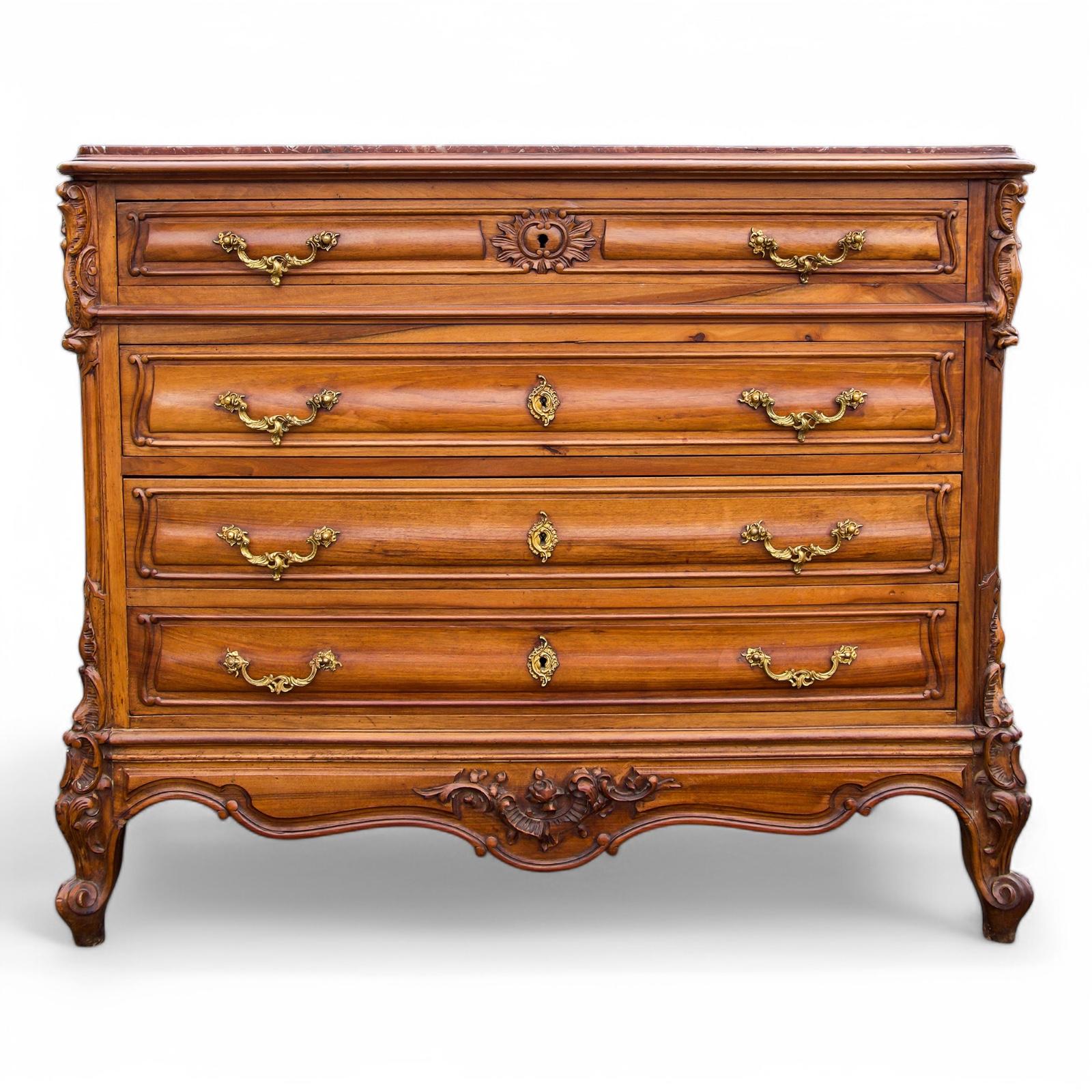 Antique Carved Walnut Marble Top Chest of Drawers (1 of 7)