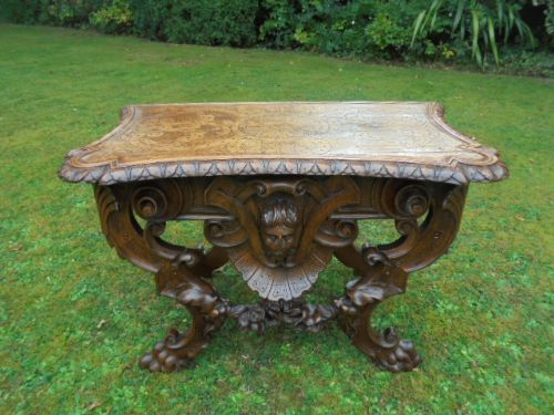 Antique Carved Walnut Table / Hall Seat / Stool c.1850