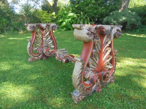 Antique Carved Wooden & Polychrome Painted Coffee Table Base c.1900