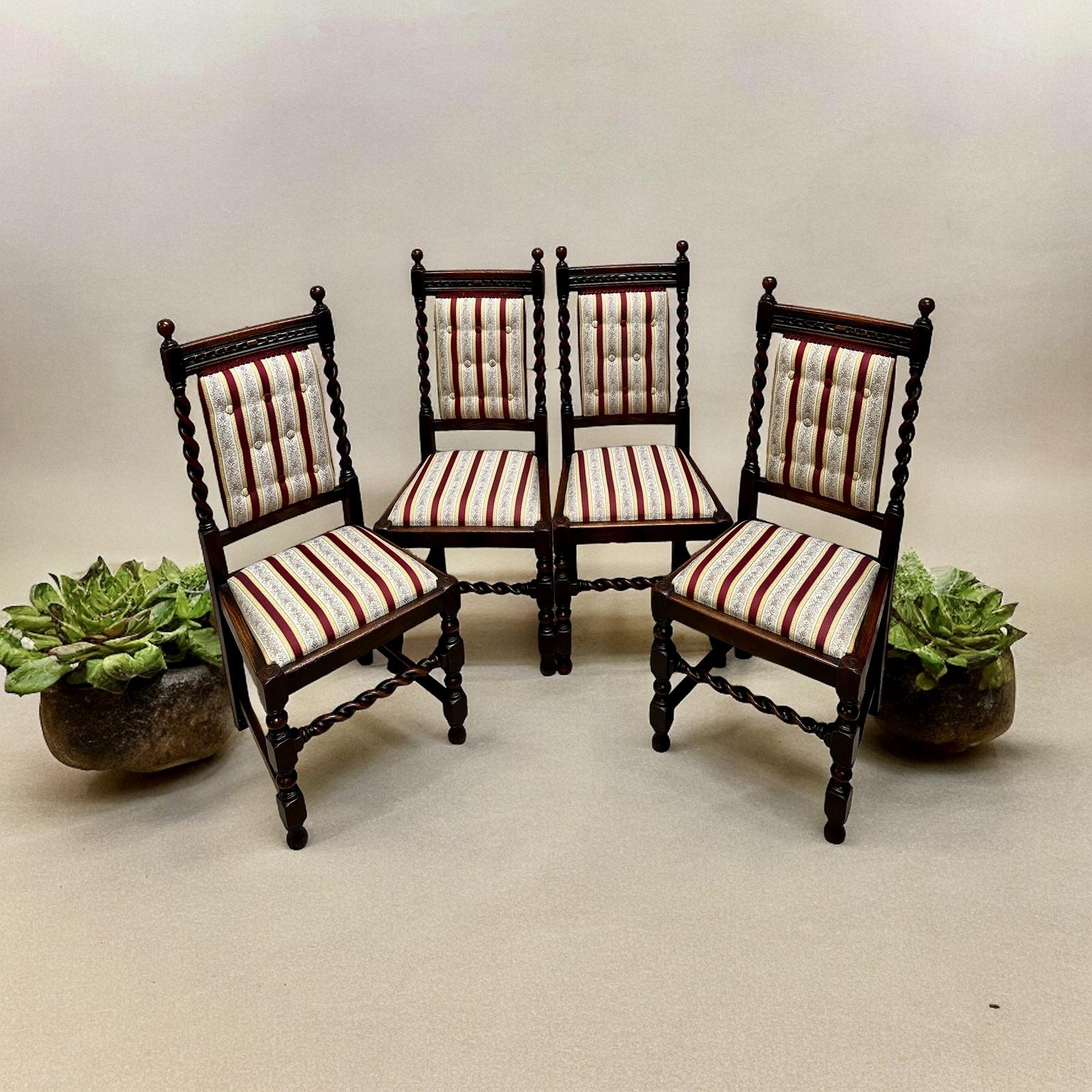 Antique Carver Oak Dining Chairs / Set of 4 / Barley Twist Detail / Late 19th Century
