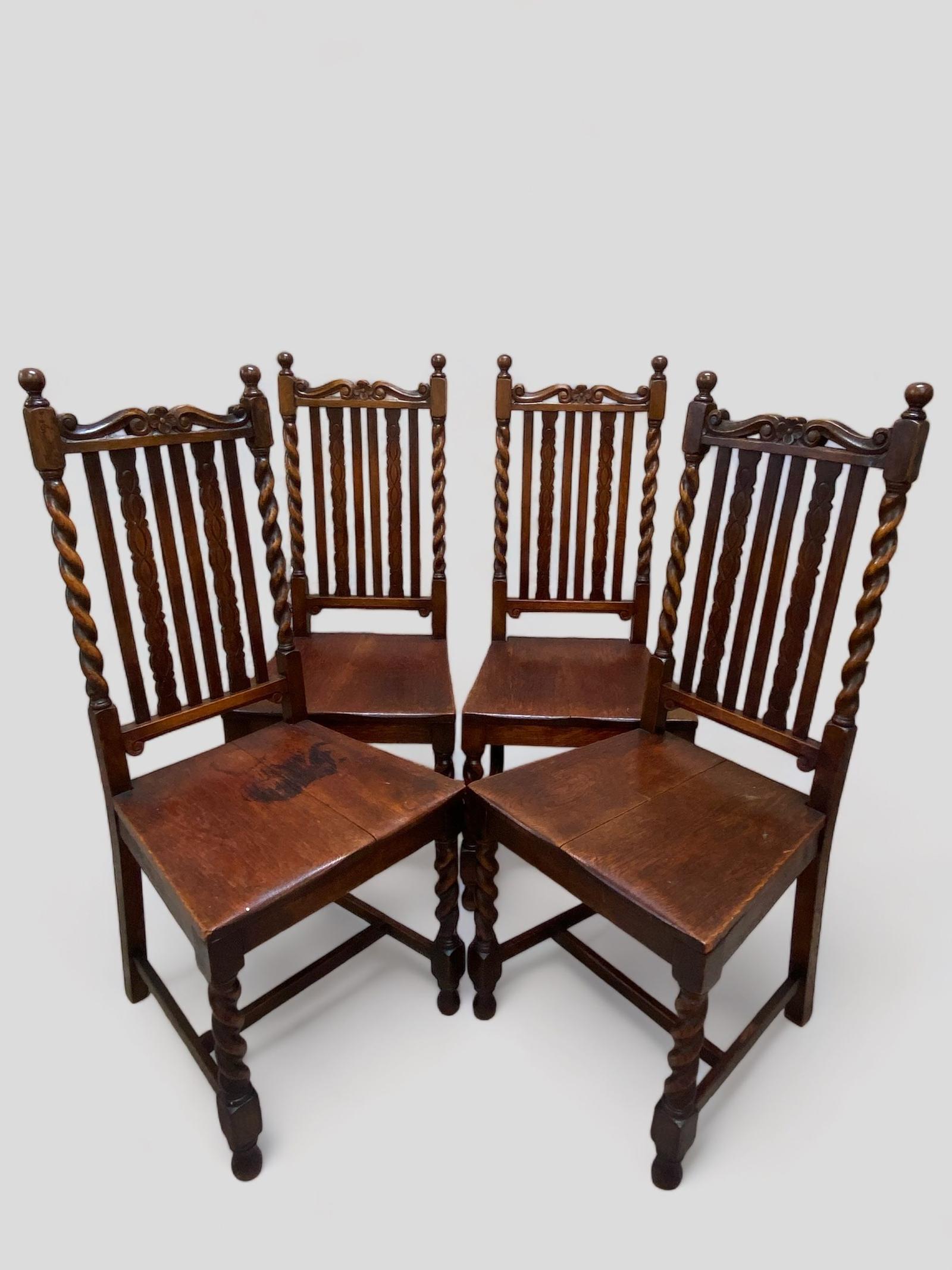 Antique Carver Oak Dining Chairs / Set of 6 / Barley Twist Detail / Late 19th Century
