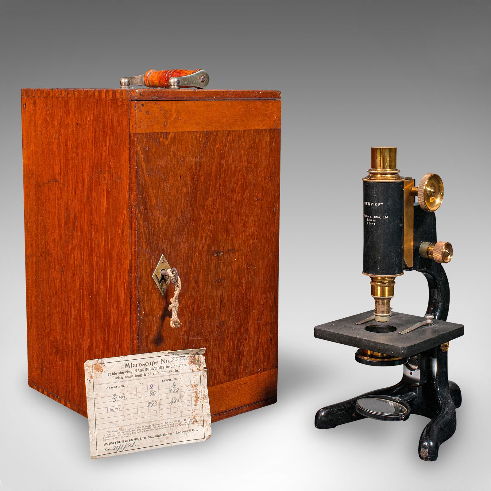 Antique Cased Microscope, English, Scientific Instrument, Watson of London c.1920
