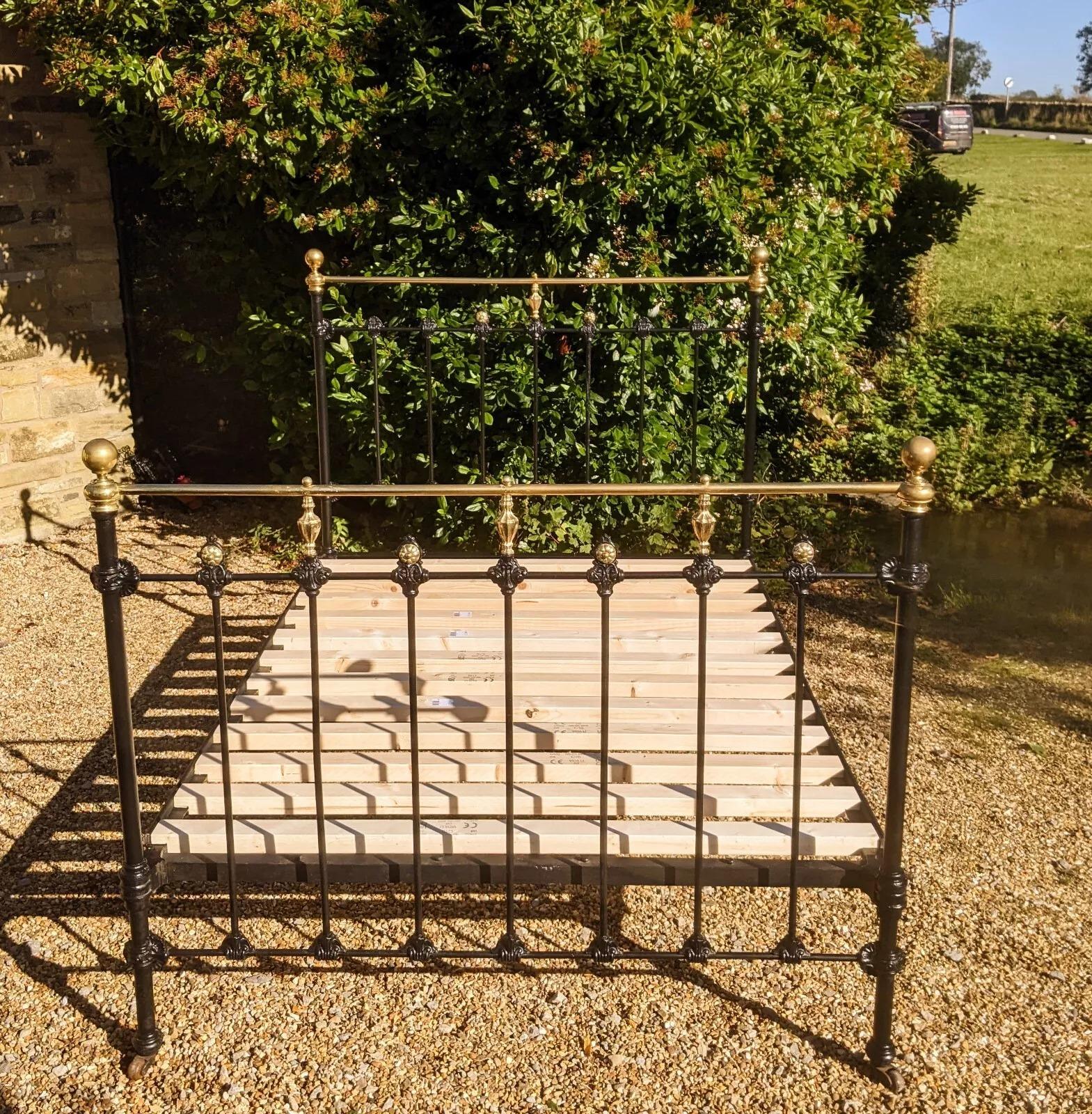 Antique Cast Iron & Brass Double Bed
