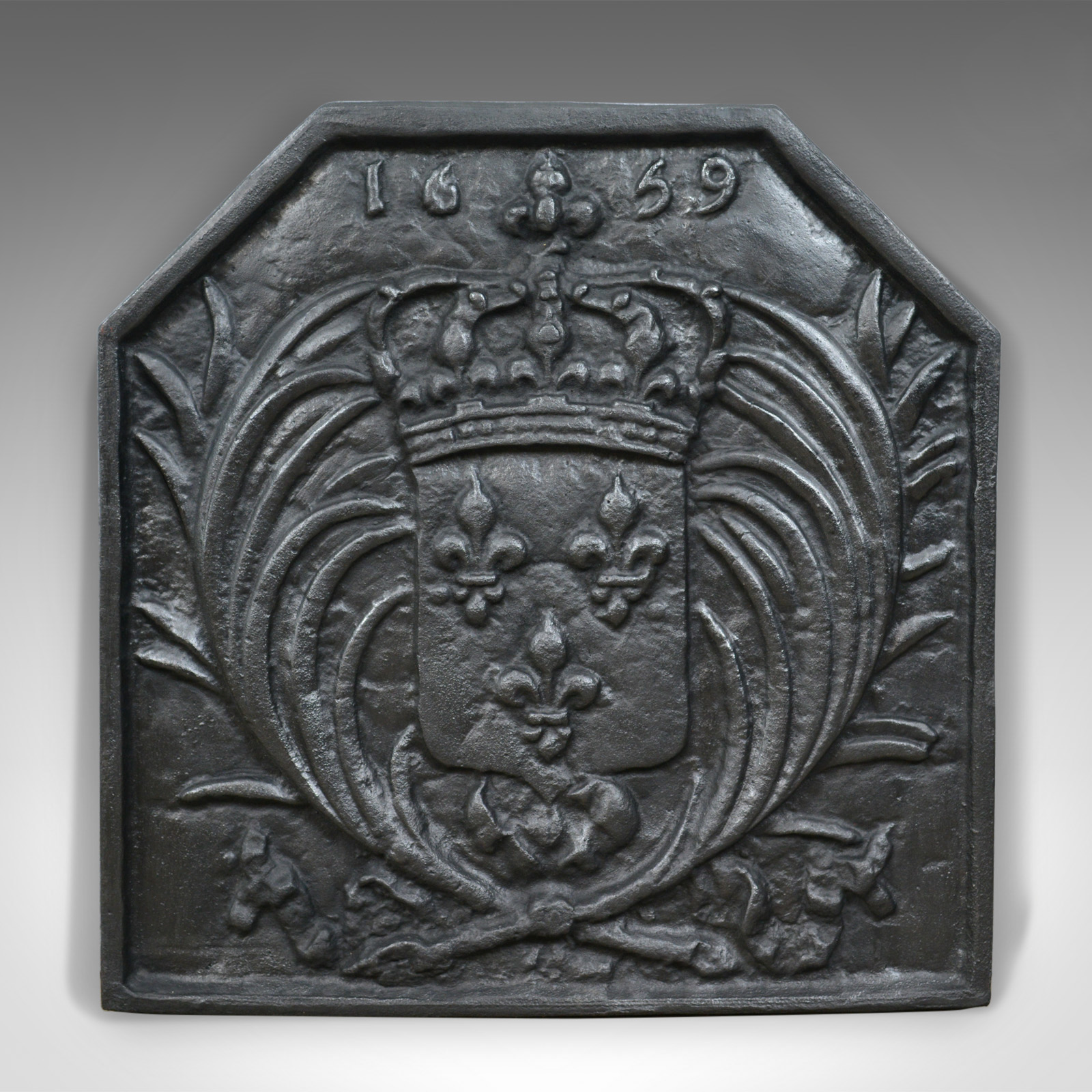 Antique Cast Iron Fire Back, Coat of Arms, Fireplace Revival Casting c.1900 (1 of 1)