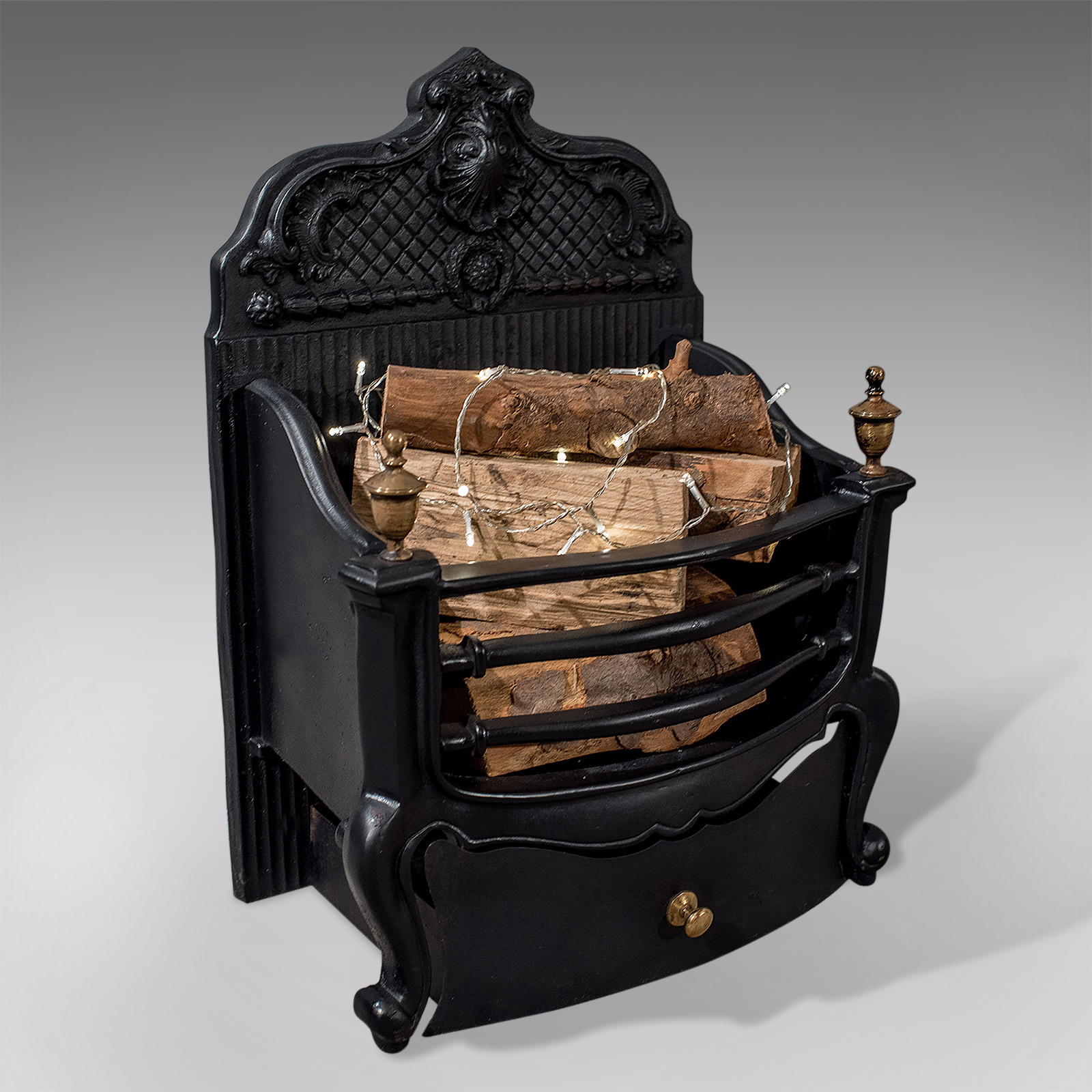 Antique Cast Iron Fire Grate Free Standing Basket English Victorian c.1900