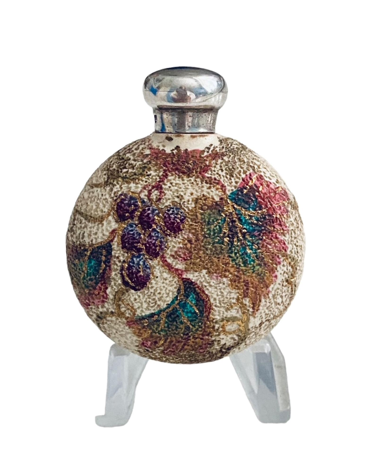 Antique Ceramic Disc Form Perfume Scent Bottle Silver Lid Chester 1888
