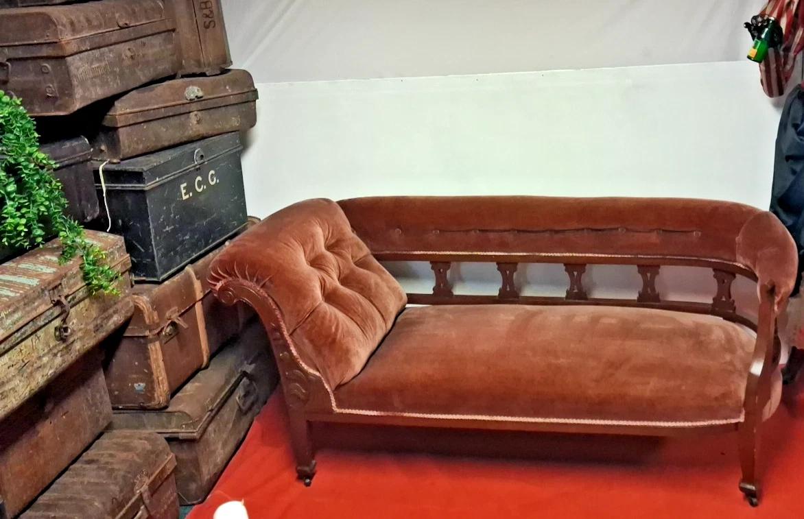 Antique Mahogany Leather Studded Commode with Original Bowl & Lid