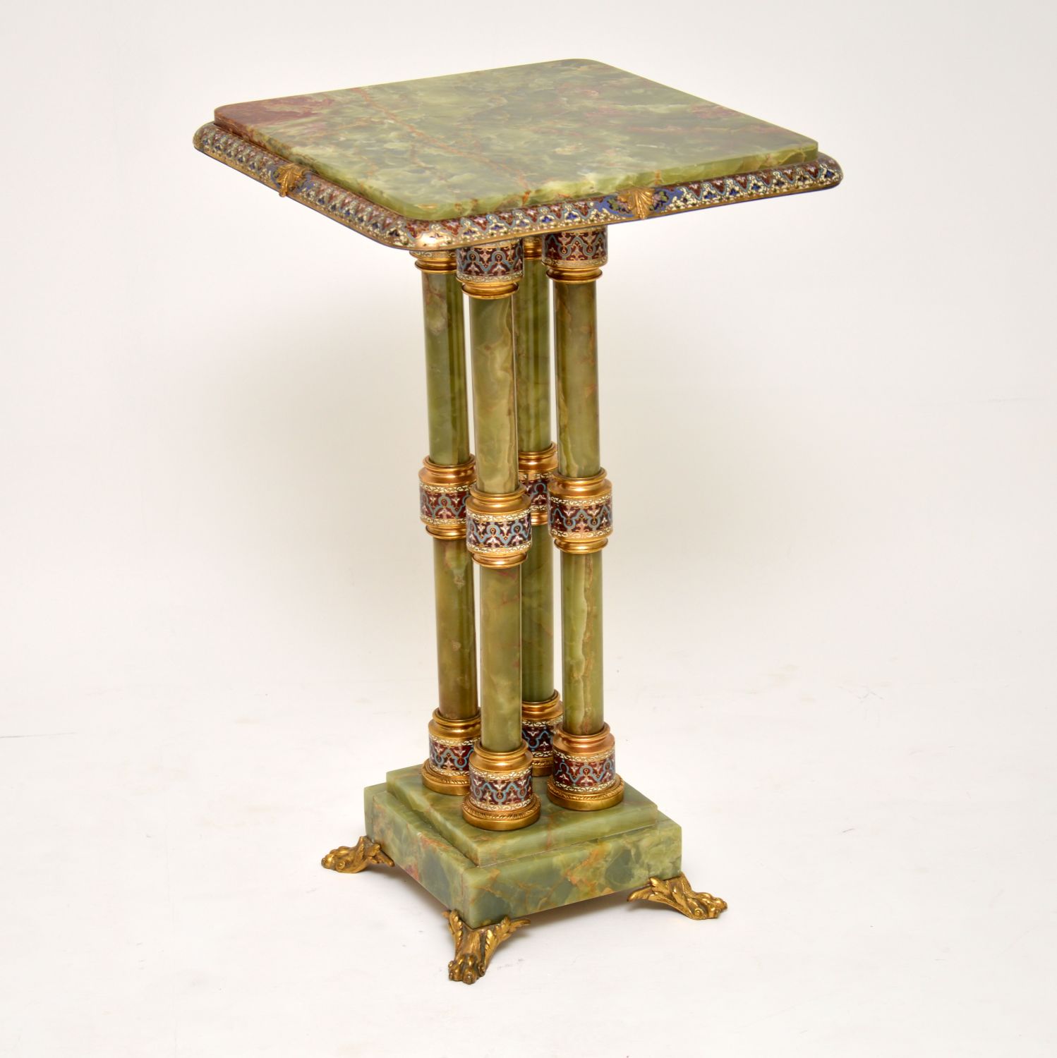 Antique Champlevé & Cloisonné Enamel Mounted Gilt Bronze Onyx Table Stand (1 of 12)