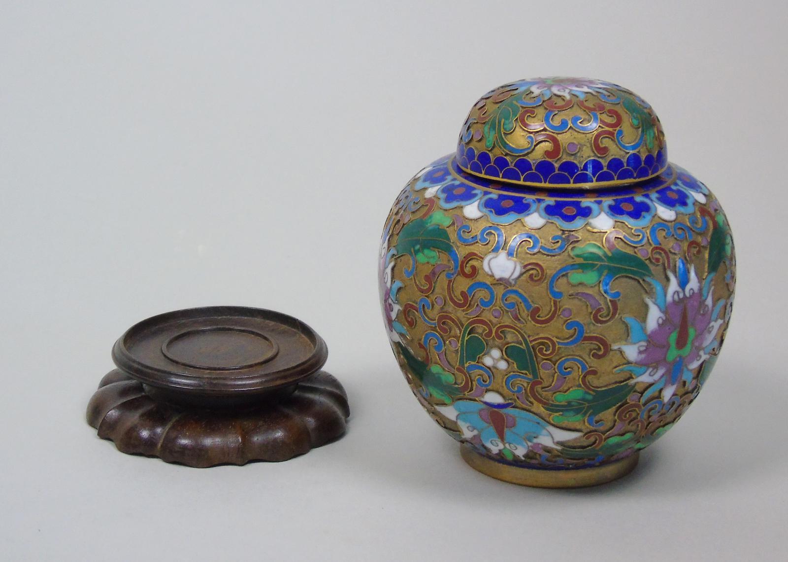 Antique Champleve Cloisonne Lidded Jar on Stand