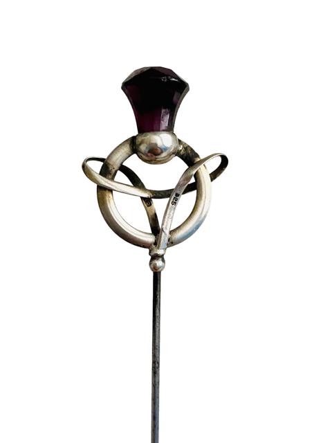 Antique Charles Horner Sterling Silver & Amethyst Thistle Hat Pin 1910 (1 of 7)