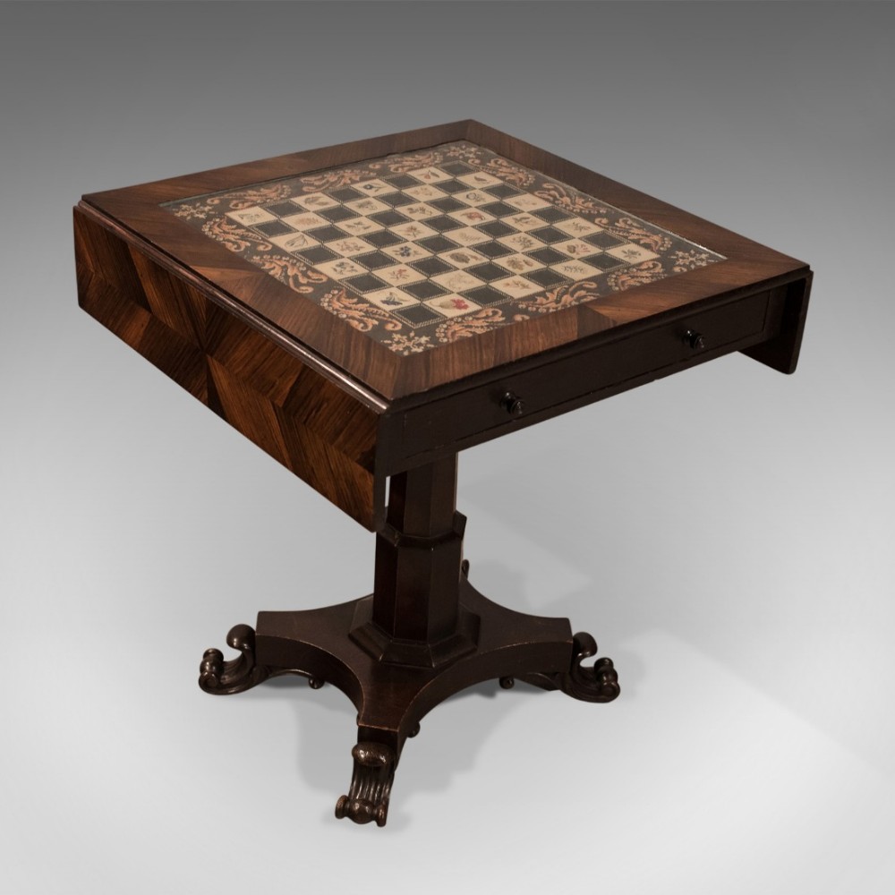 Antique Chess Board Games Table - Quality English Regency in Kingwood c.1820
