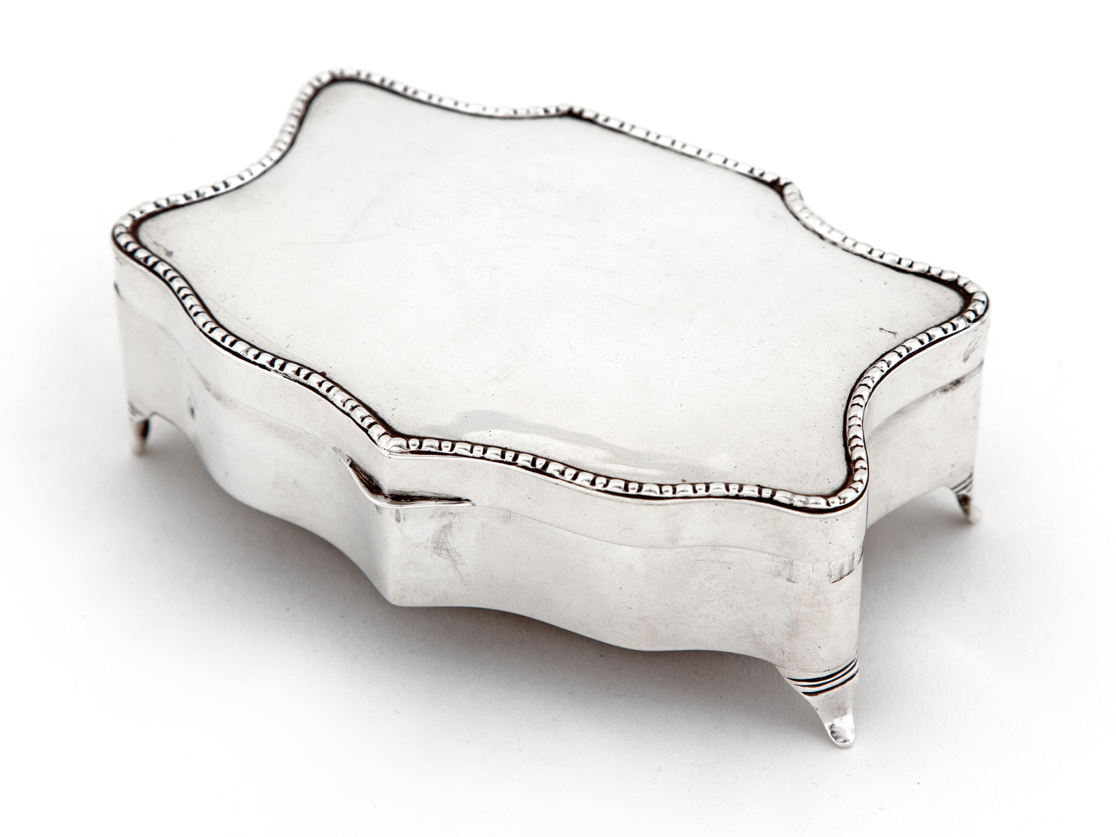Antique Chester Silver Jewellery Box with a Beaded Border to Lid