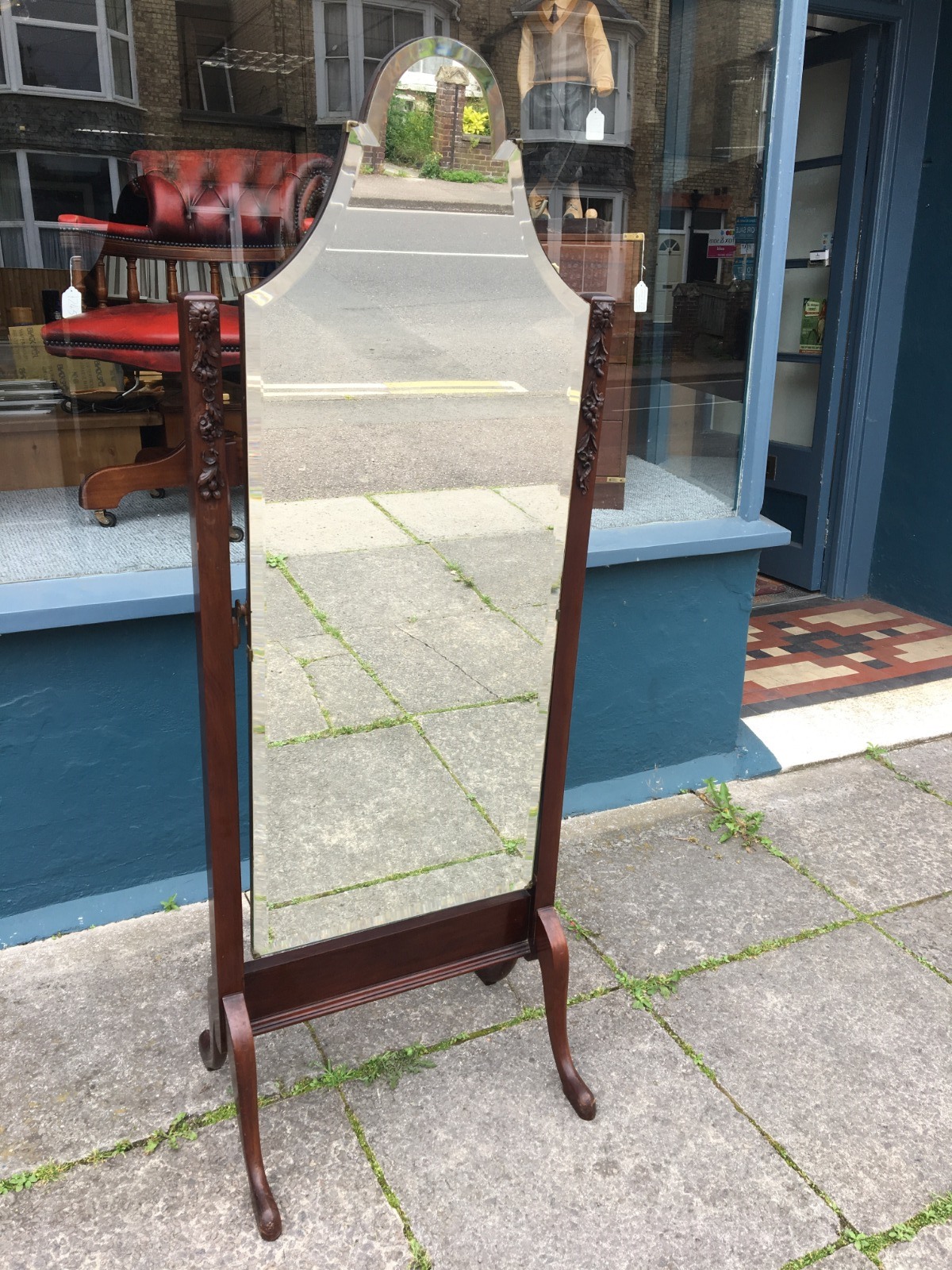 Antique Cheval Bevel Edge Mirror with Foliage Carvings