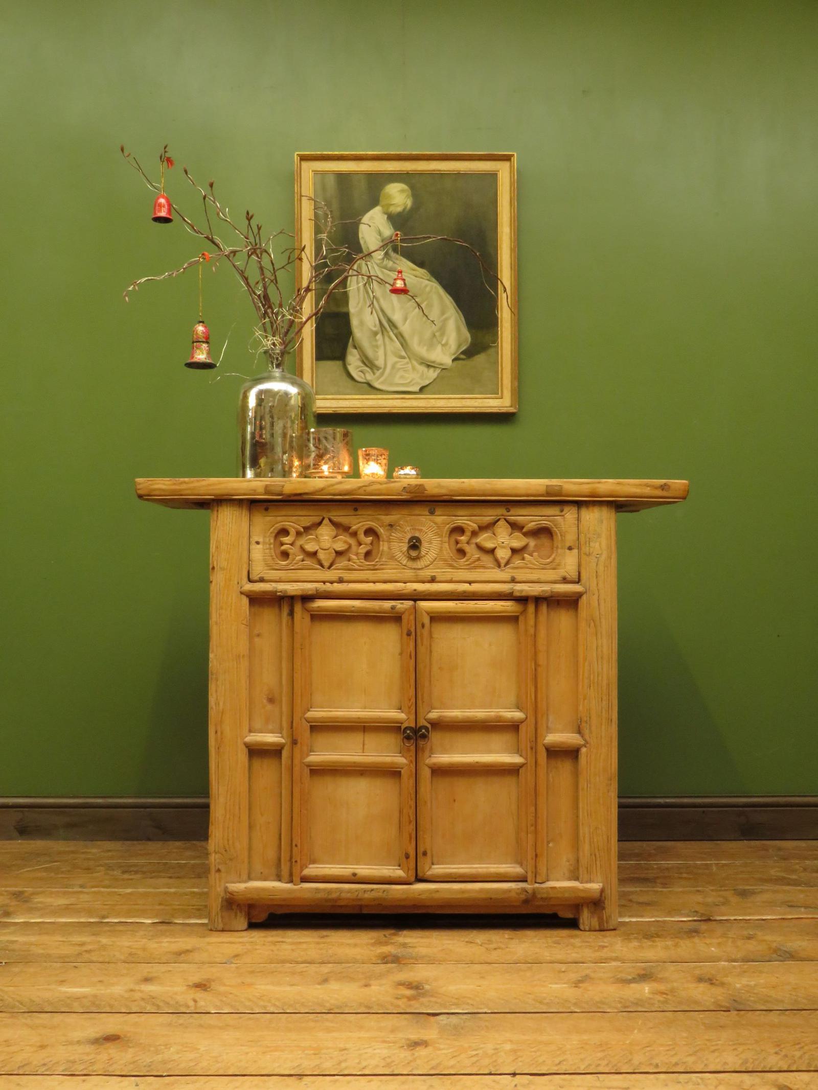 Antique Chinese Bleached Elm Altar Cabinet Late Qing Period 19th Century Cabinet
