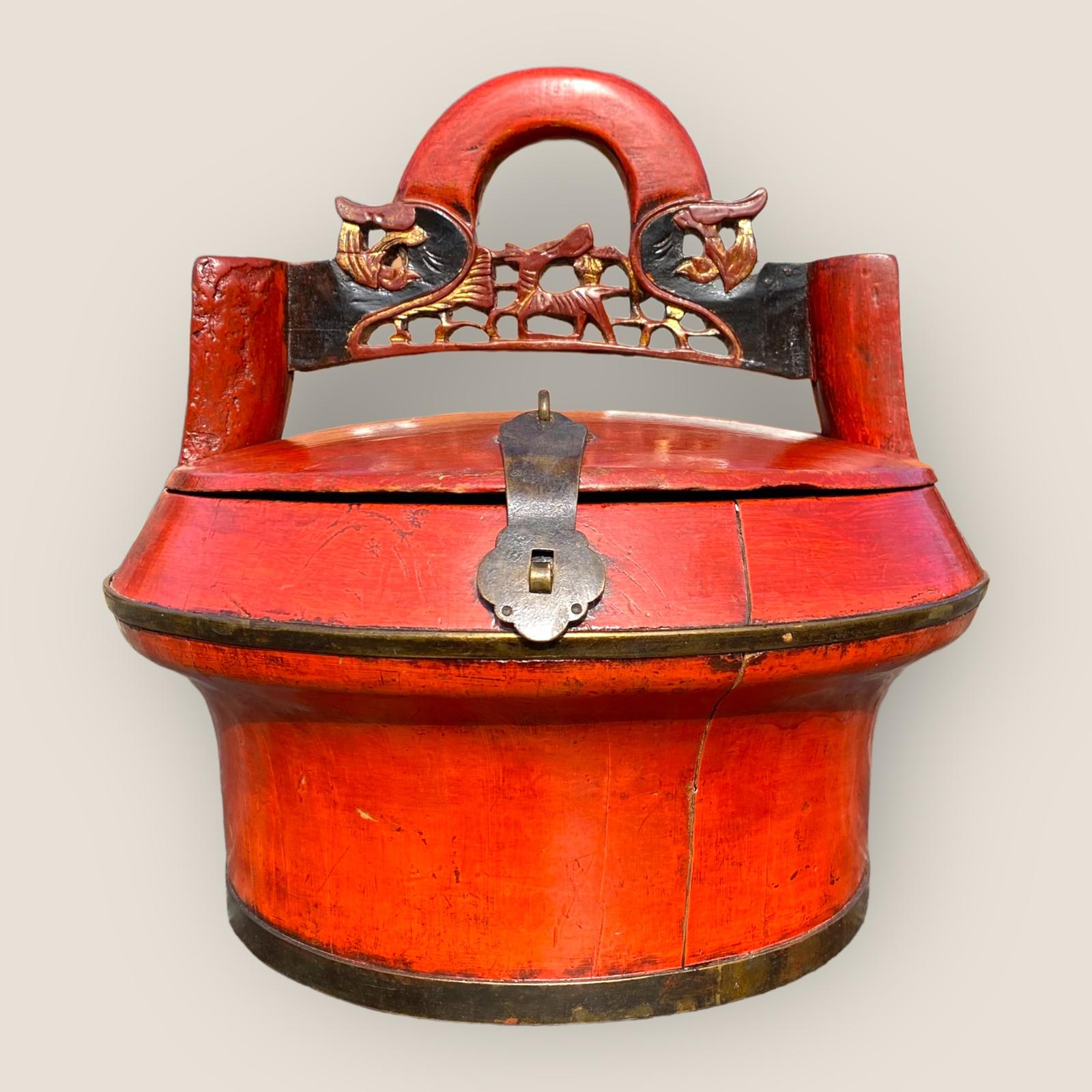 Antique Chinese Carved Wood Wedding Basket (1 of 9)