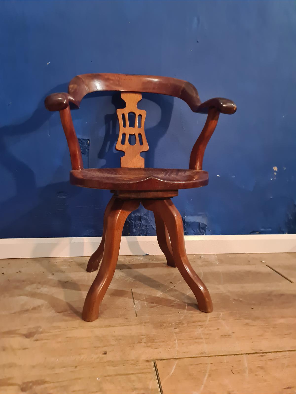 Antique Chinese Cherry Wood Swivel Captains Desk Chair