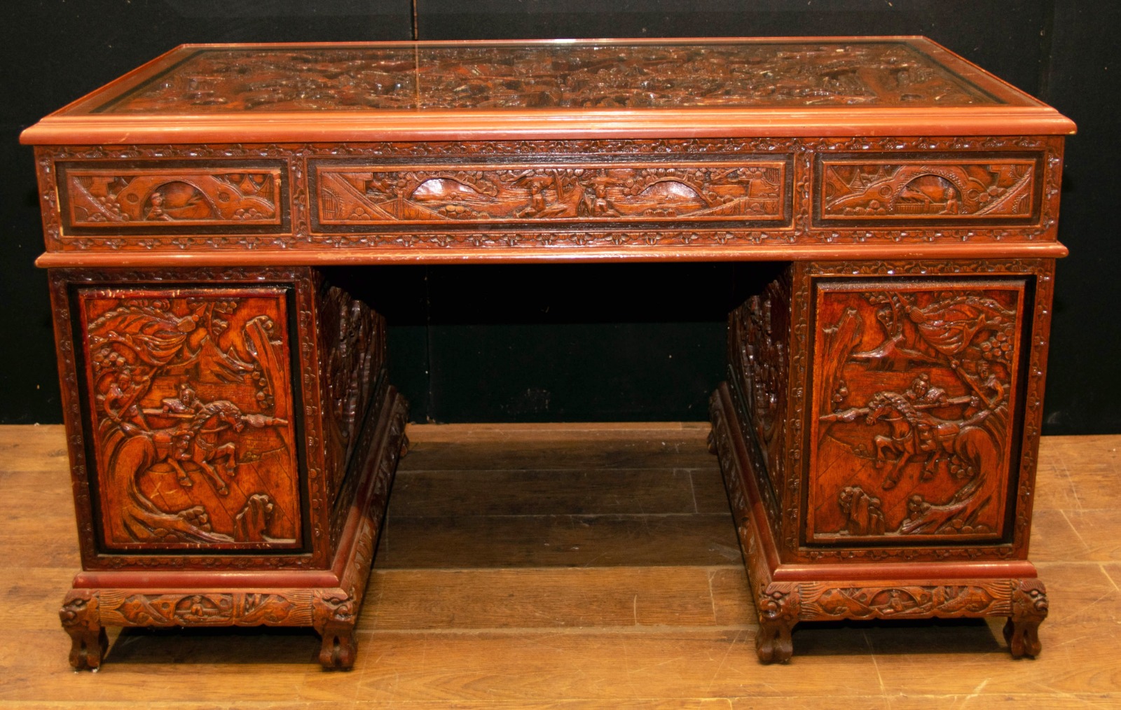 Antique Chinese Desk - Carved Pedestal Desk c.1890