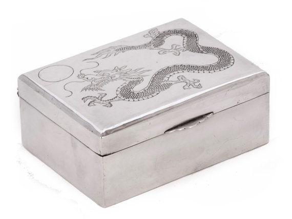 Antique Chinese Dragon Solid Sterling Silver Box by Tuckchang jewelry box