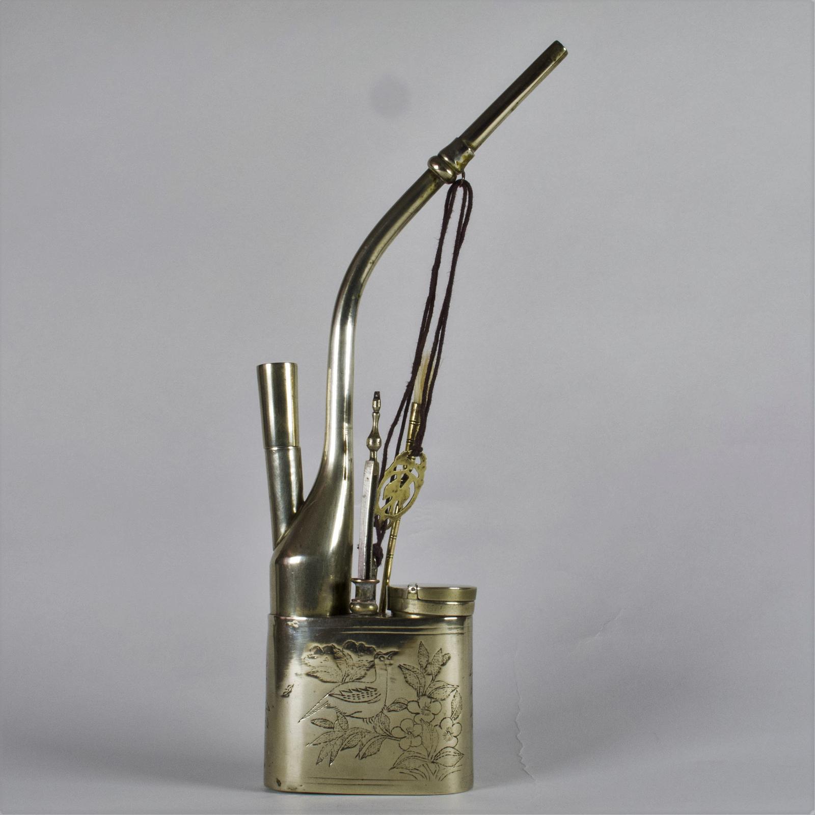 Antique Chinese Engraved Paktong Water Pipe