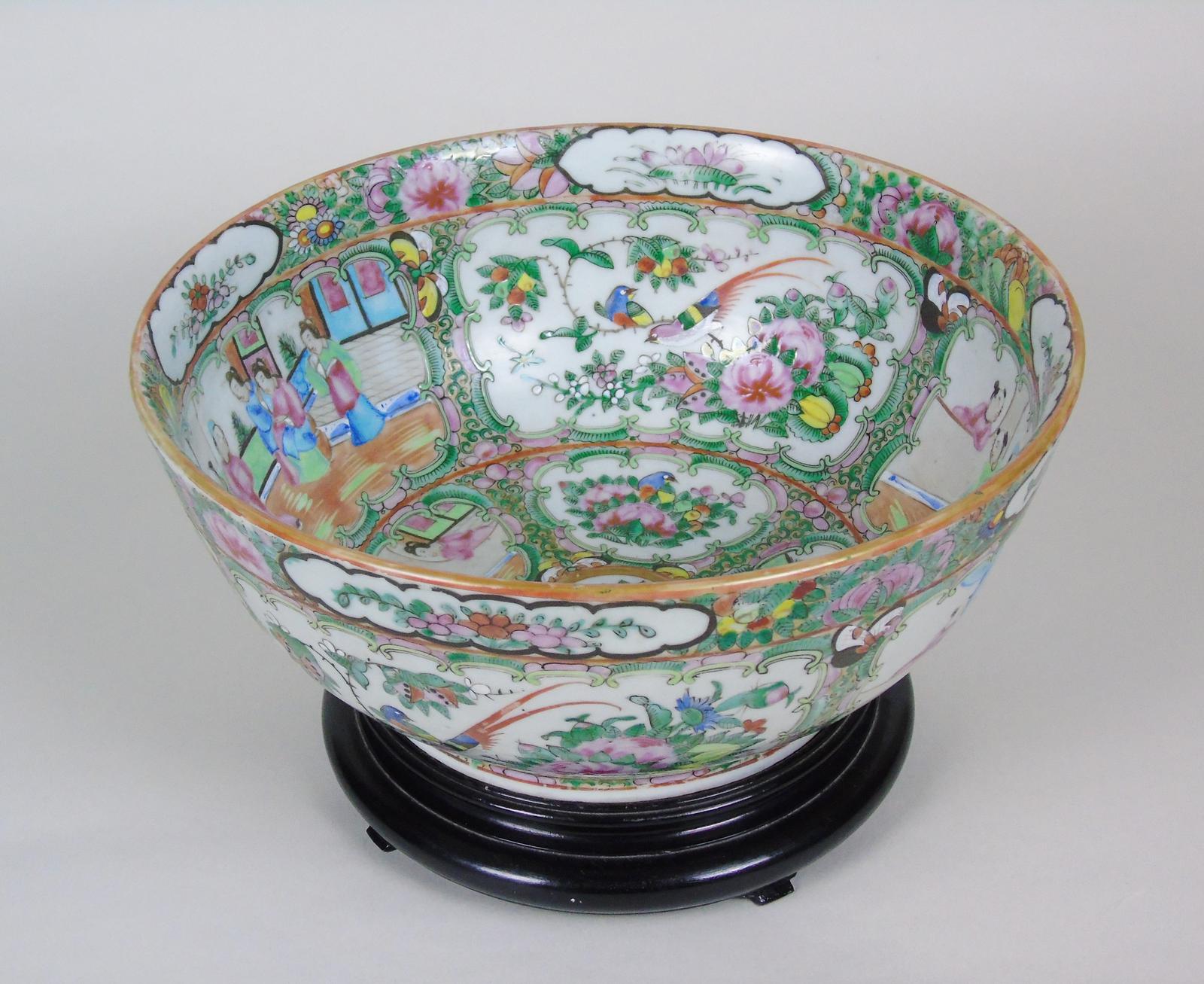 Antique Chinese Famille Vert Punch Bowl on Stand