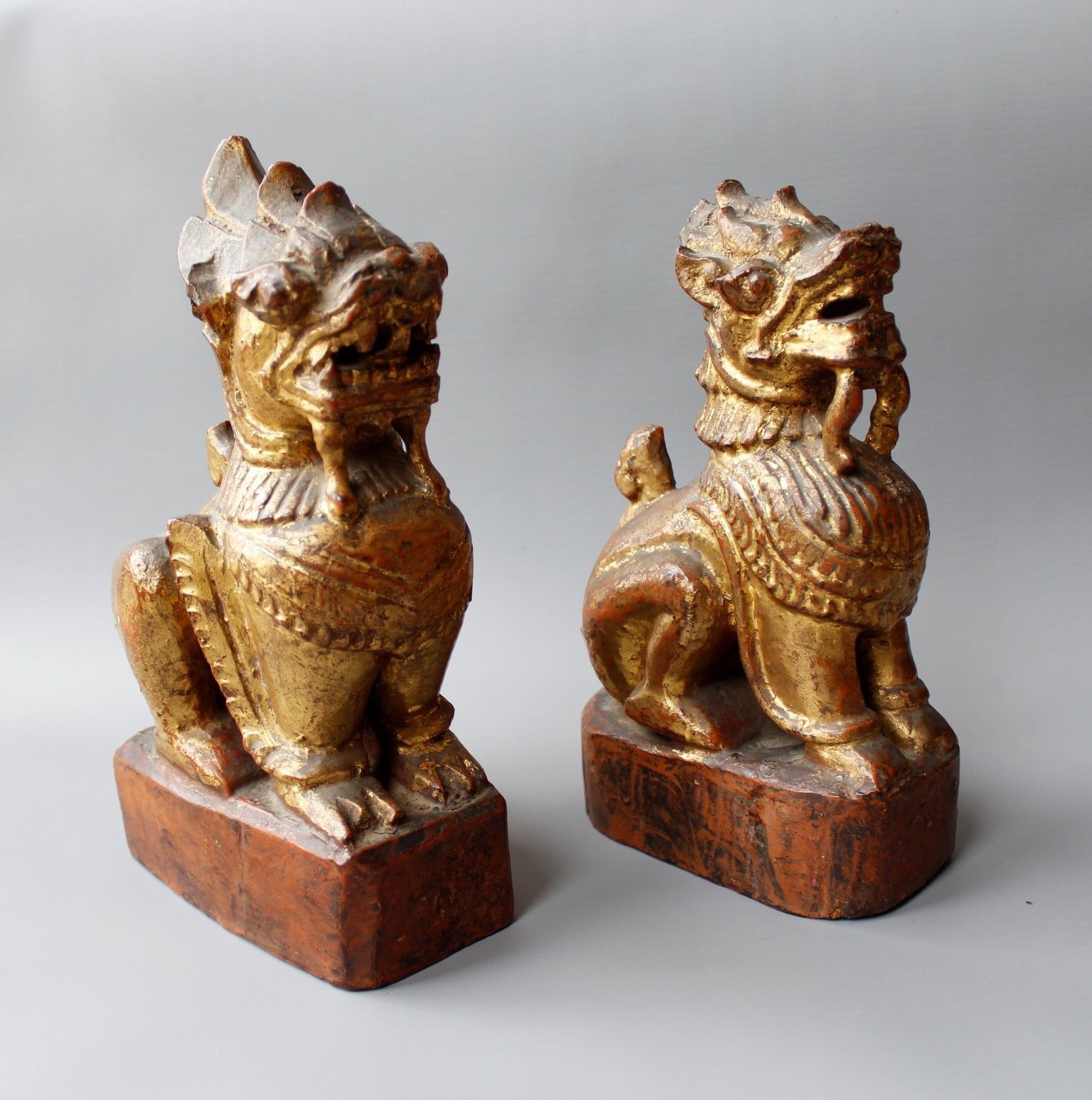Antique Chinese Giltwood Fo Dogs Near Pai c.1850 (1 of 1)