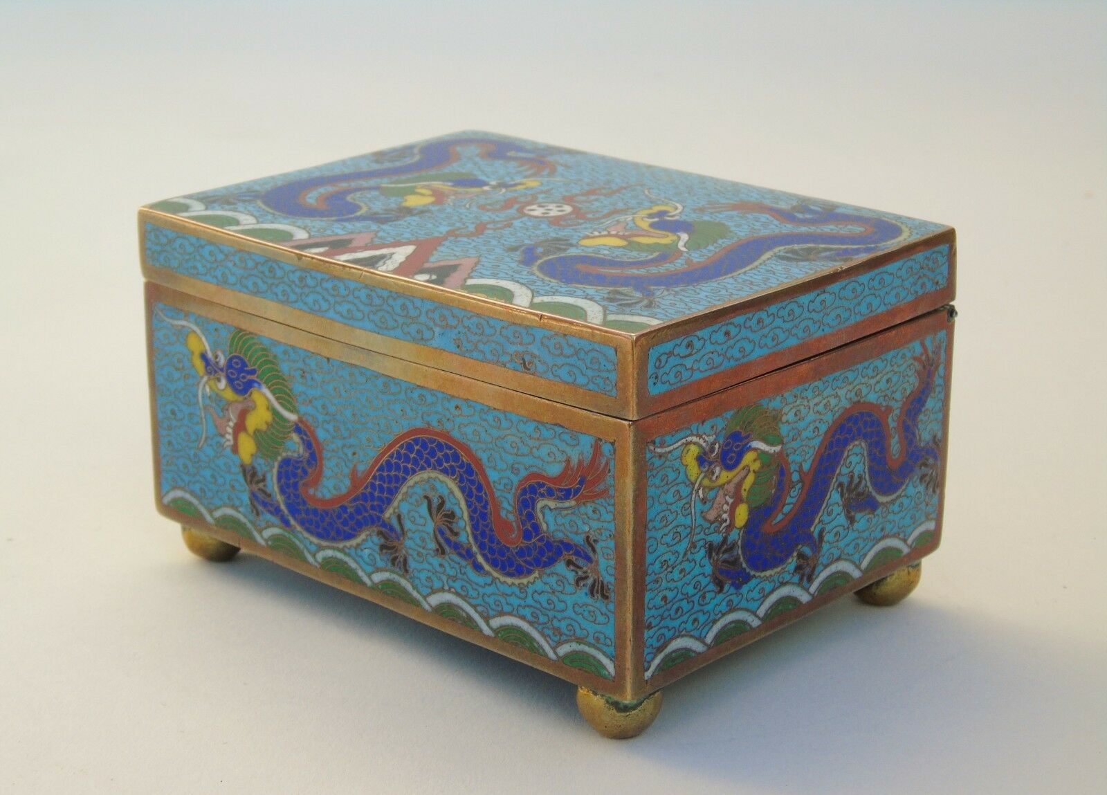 Antique Chinese Lidded Cloisonne Dragon Box c.1900