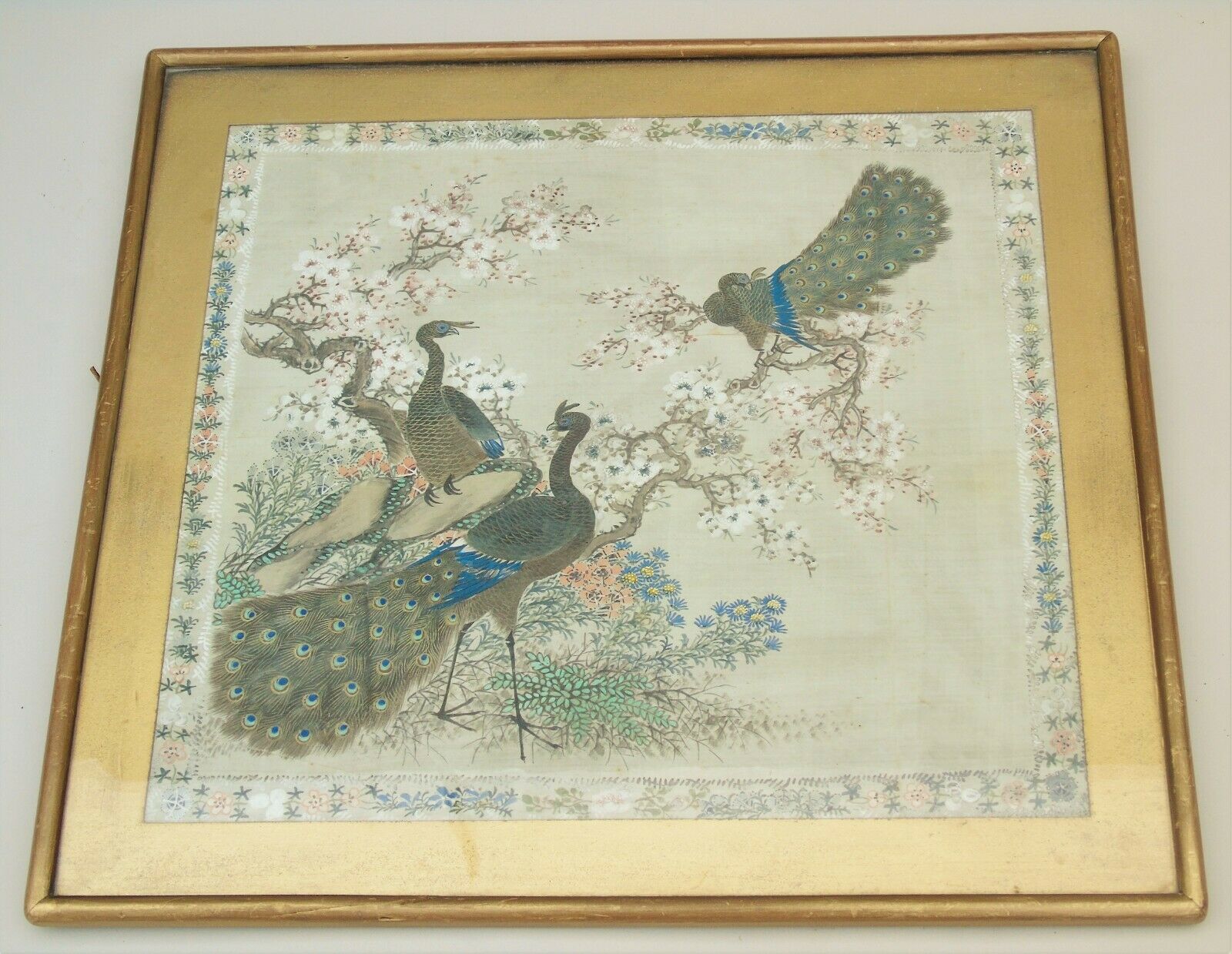 Antique Chinese Painting on Silk Peacocks (1 of 1)