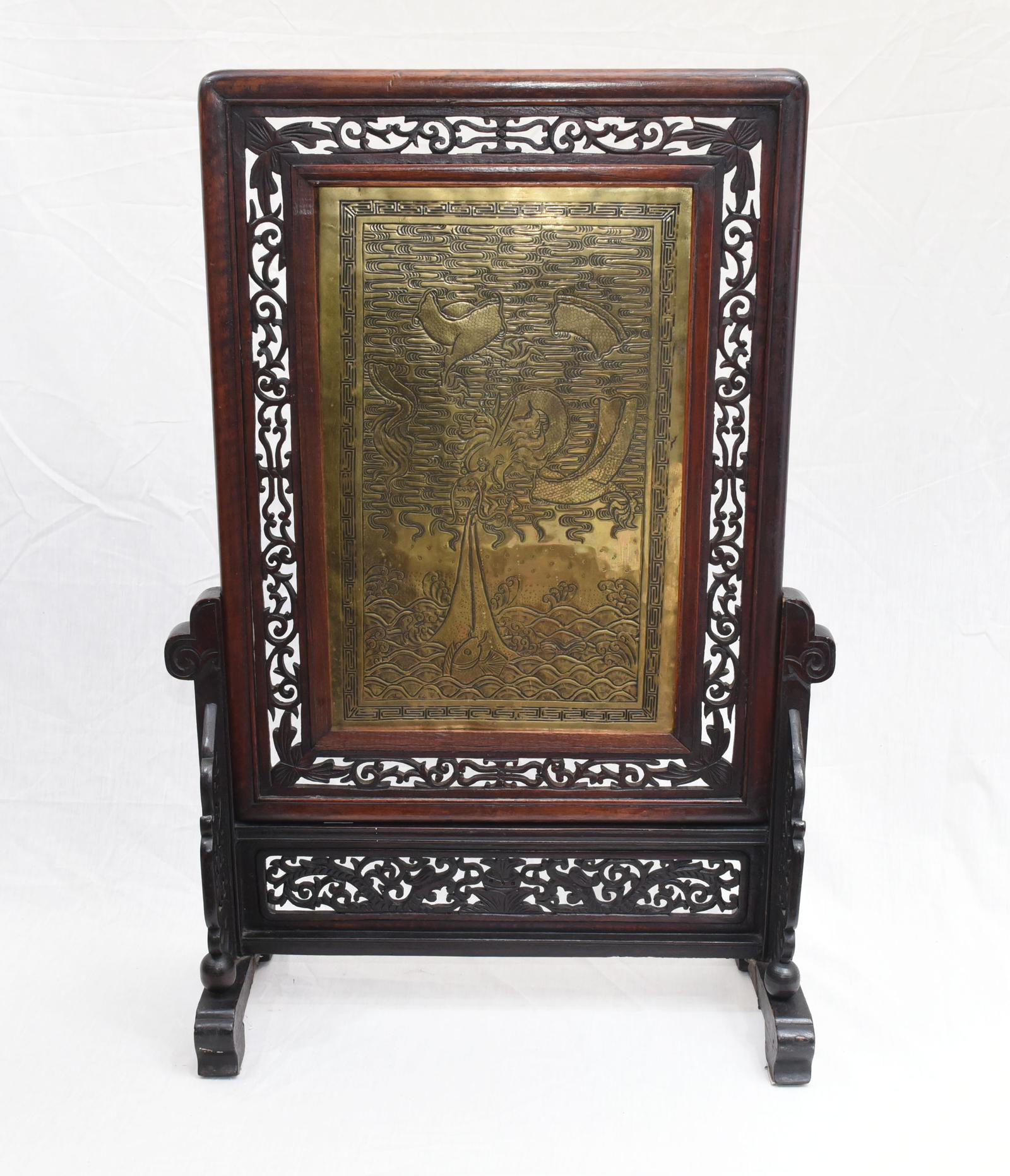 Antique Chinese Screen Hardwood Brass Plaque Circa 1890