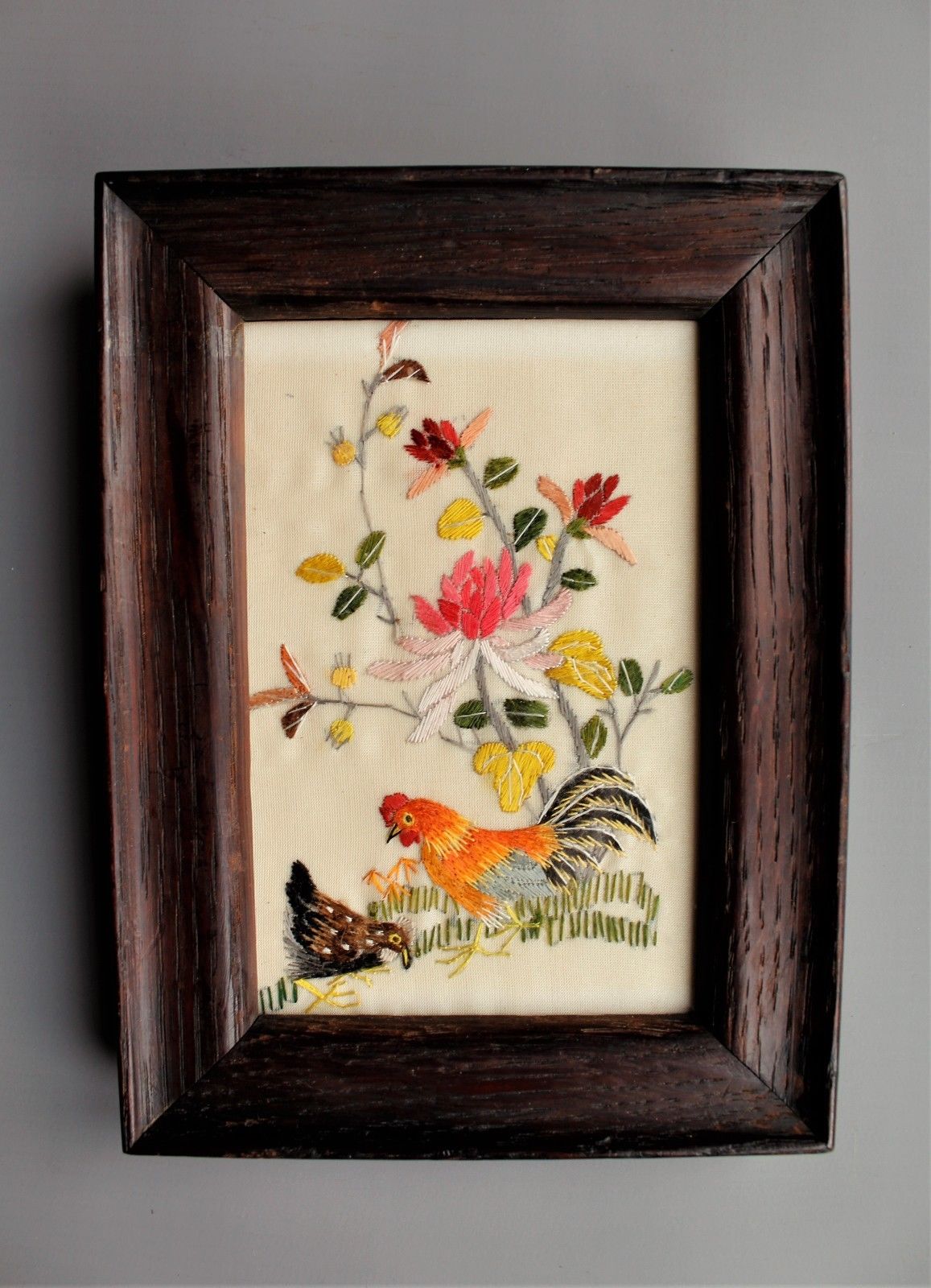 Antique Chinese Silk Embroidery Chickens c.1890 (1 of 1)