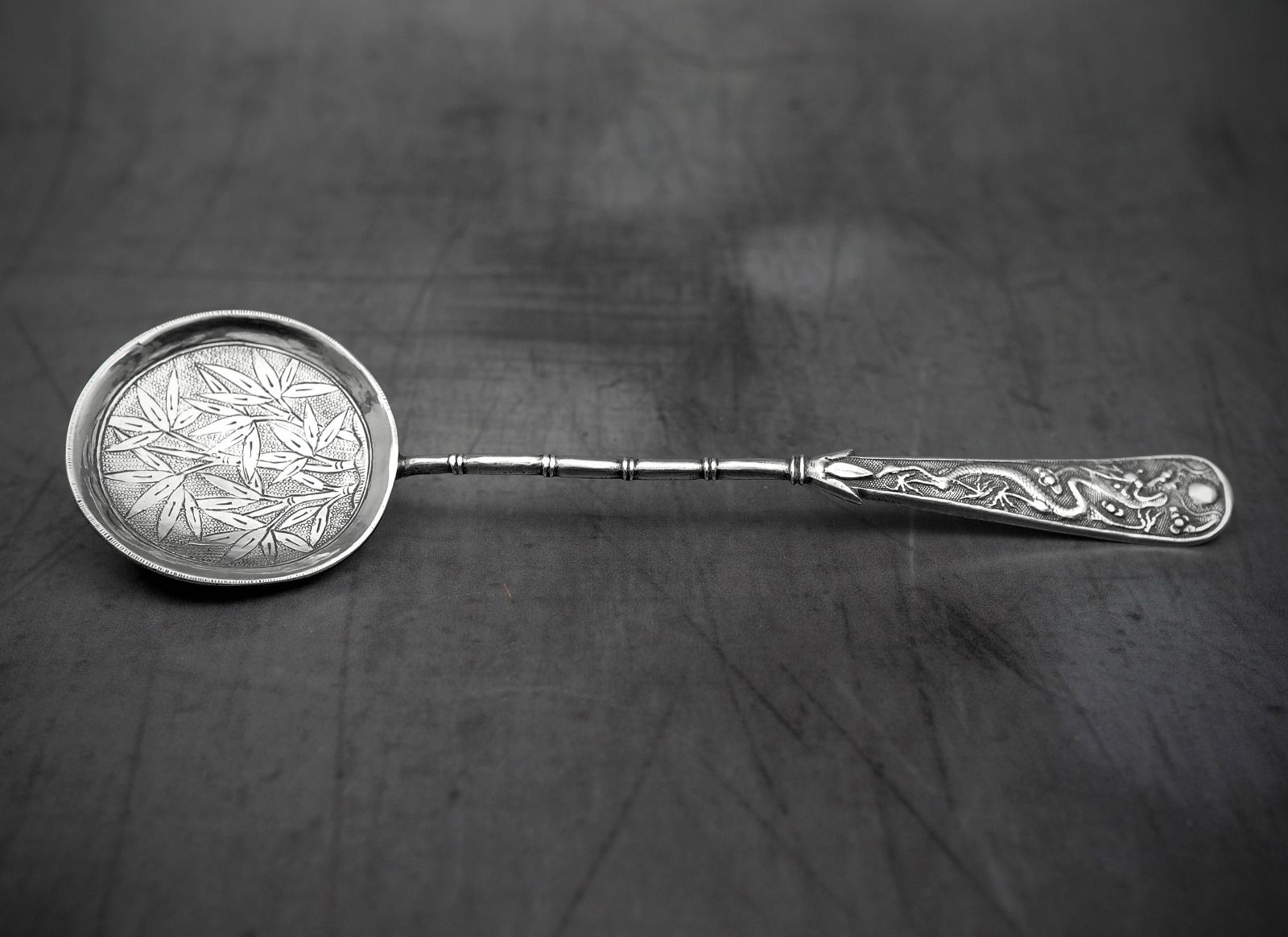 Antique Chinese Silver Spoon, Dragon Handled by Tu Qing Yun c.1910