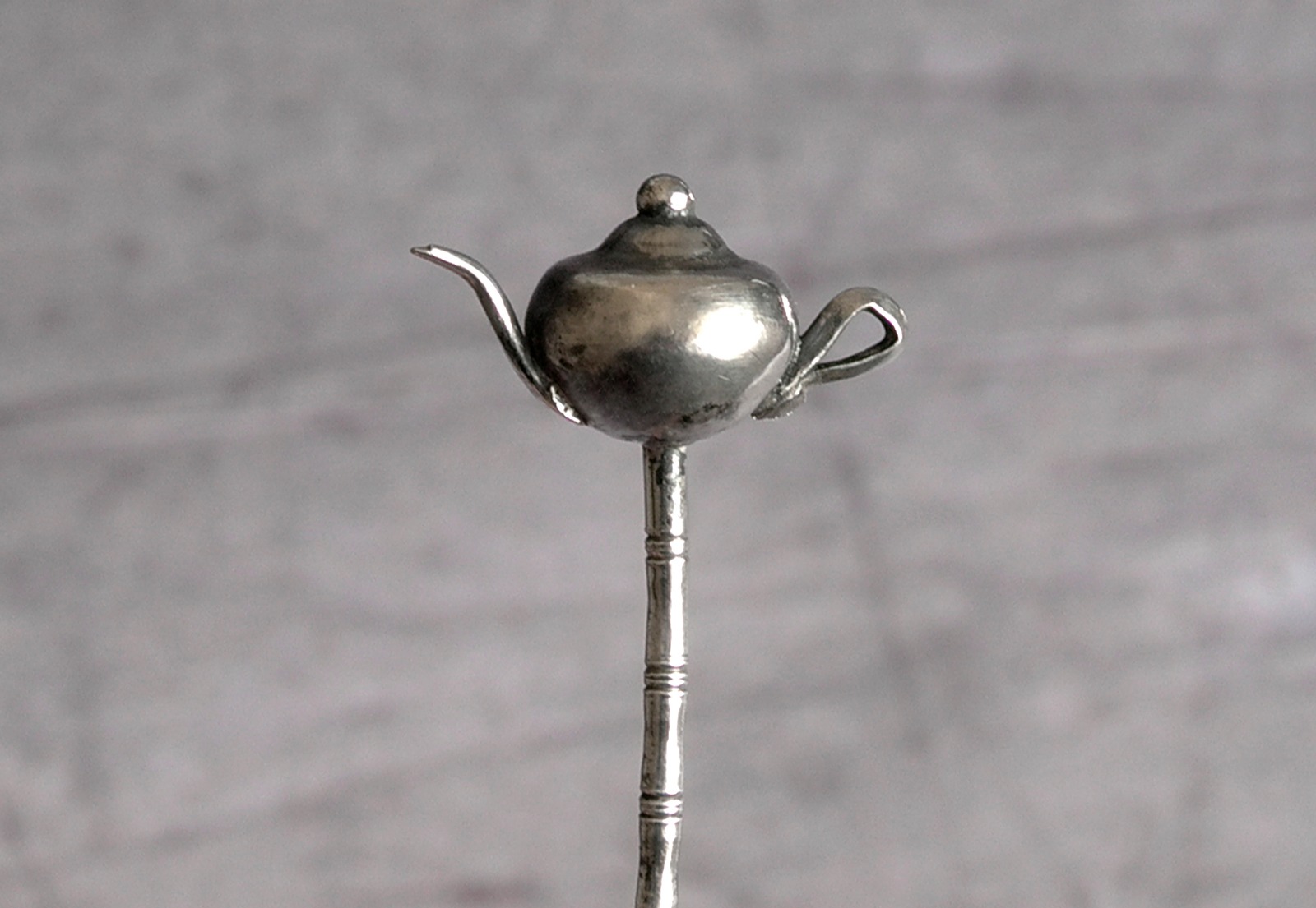 Antique Chinese Silver Teapot Stick Lapel Pin c.1920
