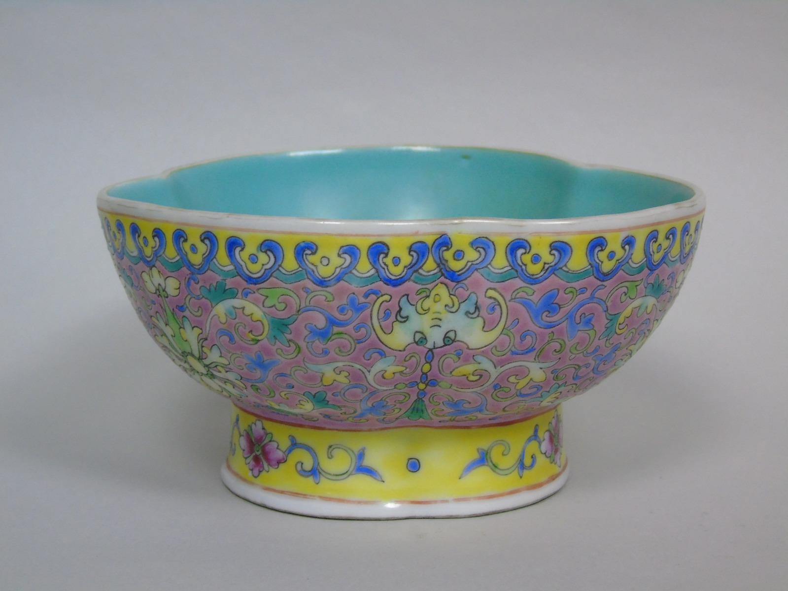Antique Chinese Trefoil Porcelain Bowl Famille Rose (1 of 1)
