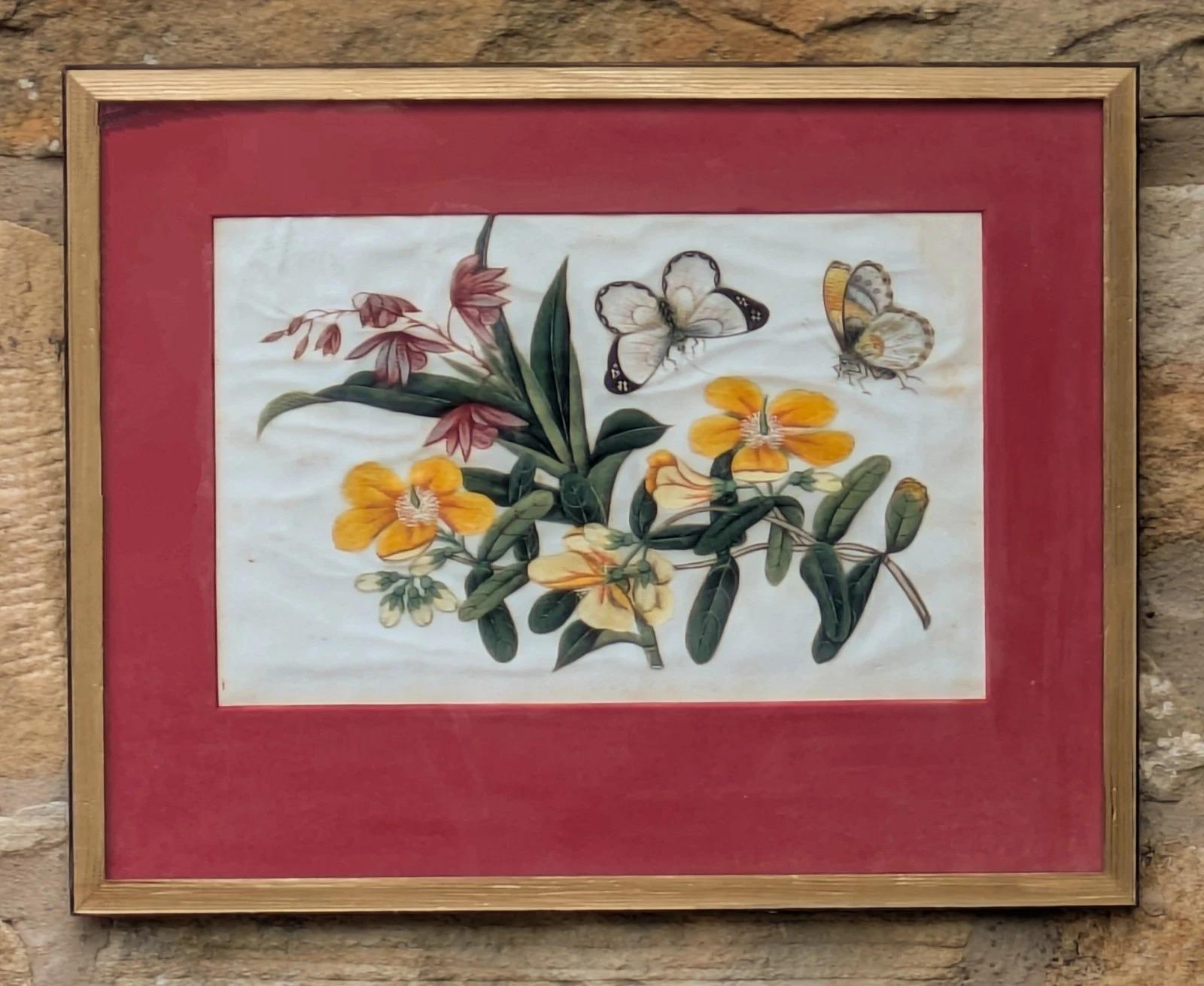 Antique Chinese Watercolour Painting Butterflies & Blossom
