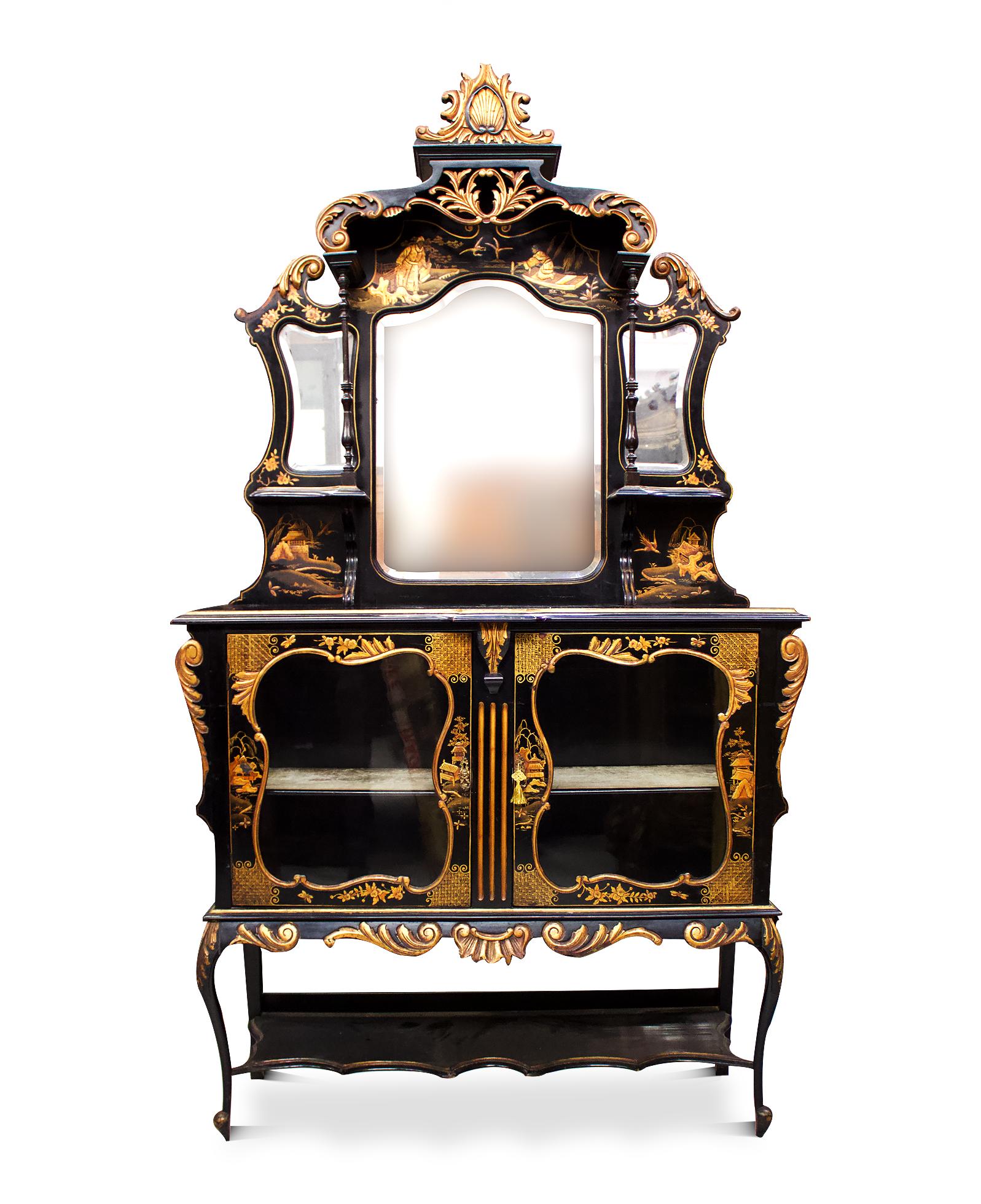 Antique Chinoiserie Decorated Lacquered Ebonised Cabinet (1 of 6)
