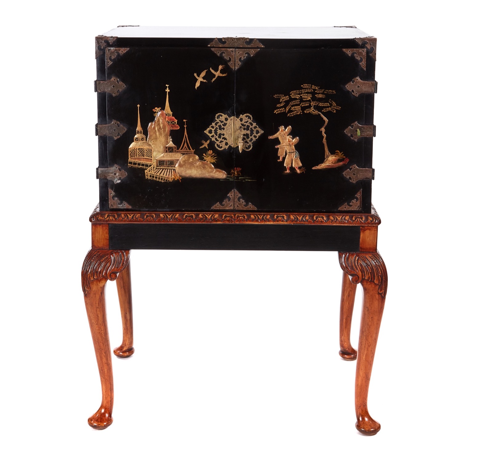 Antique Chinoiserie Lacquered Cabinet on Stand