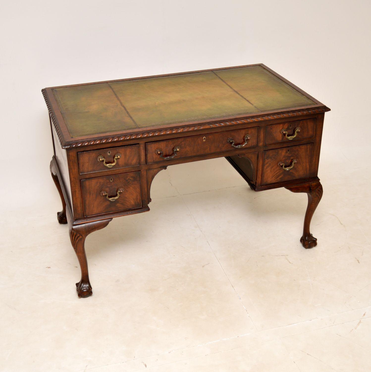 Antique Chippendale Style Mahogany Leather Top Desk