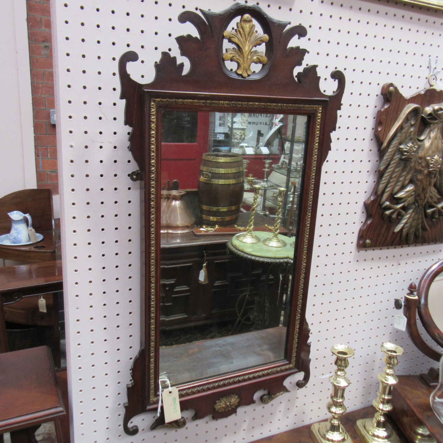 Antique Chippendale Style Mahogany Wall Mirror c.1910