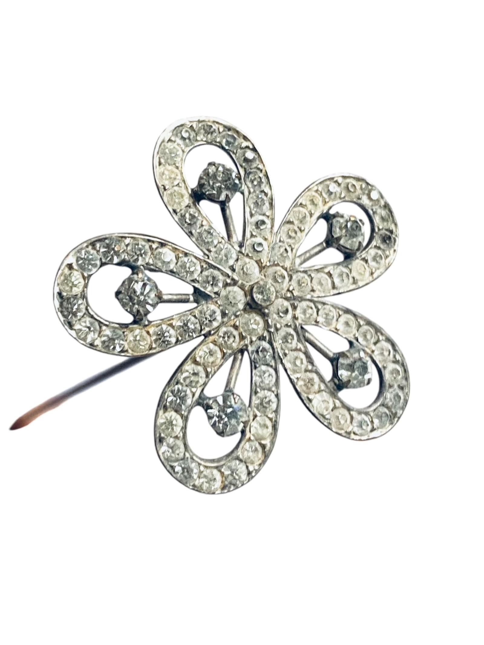 Antique Clear Paste Jewelled Flower Form Hat Pin c.1910